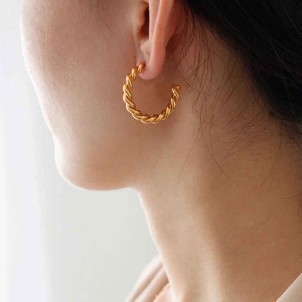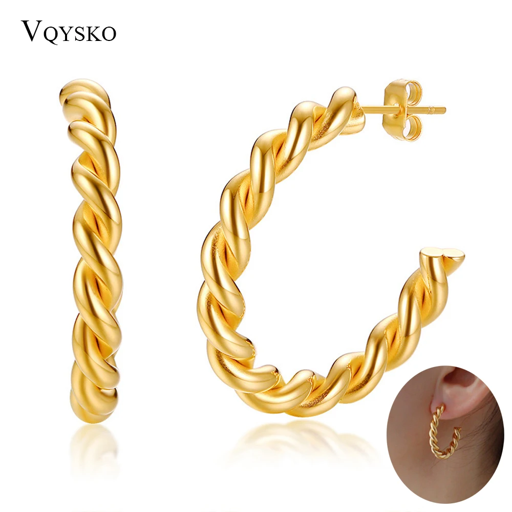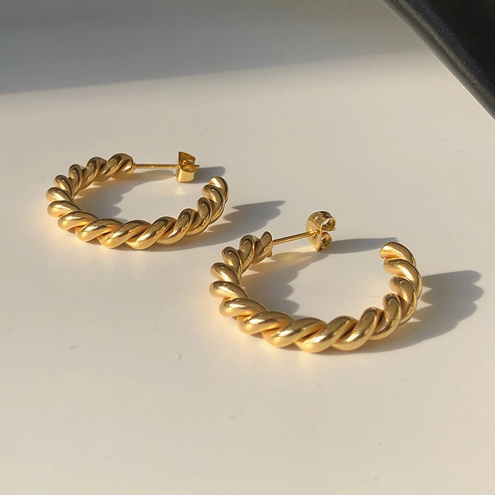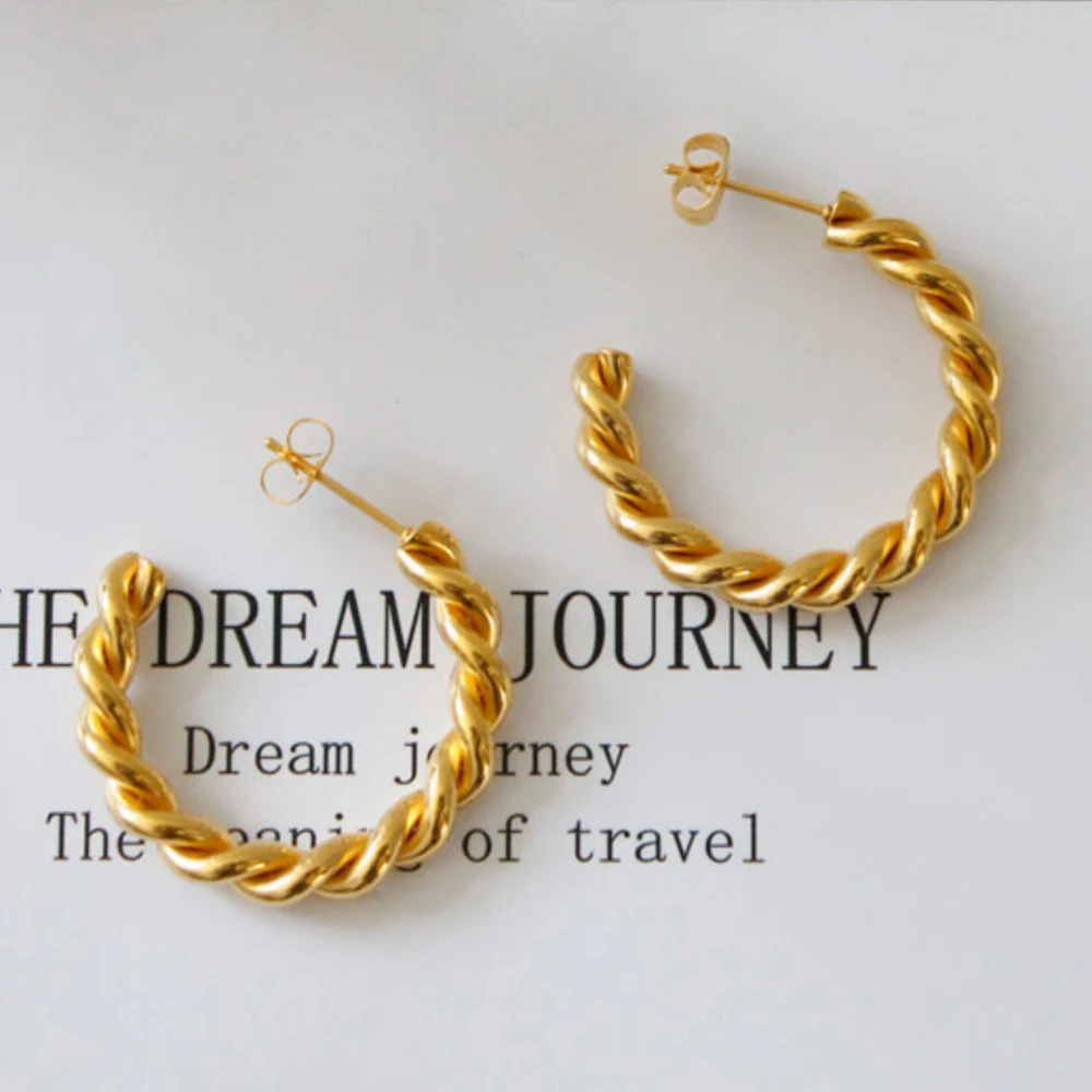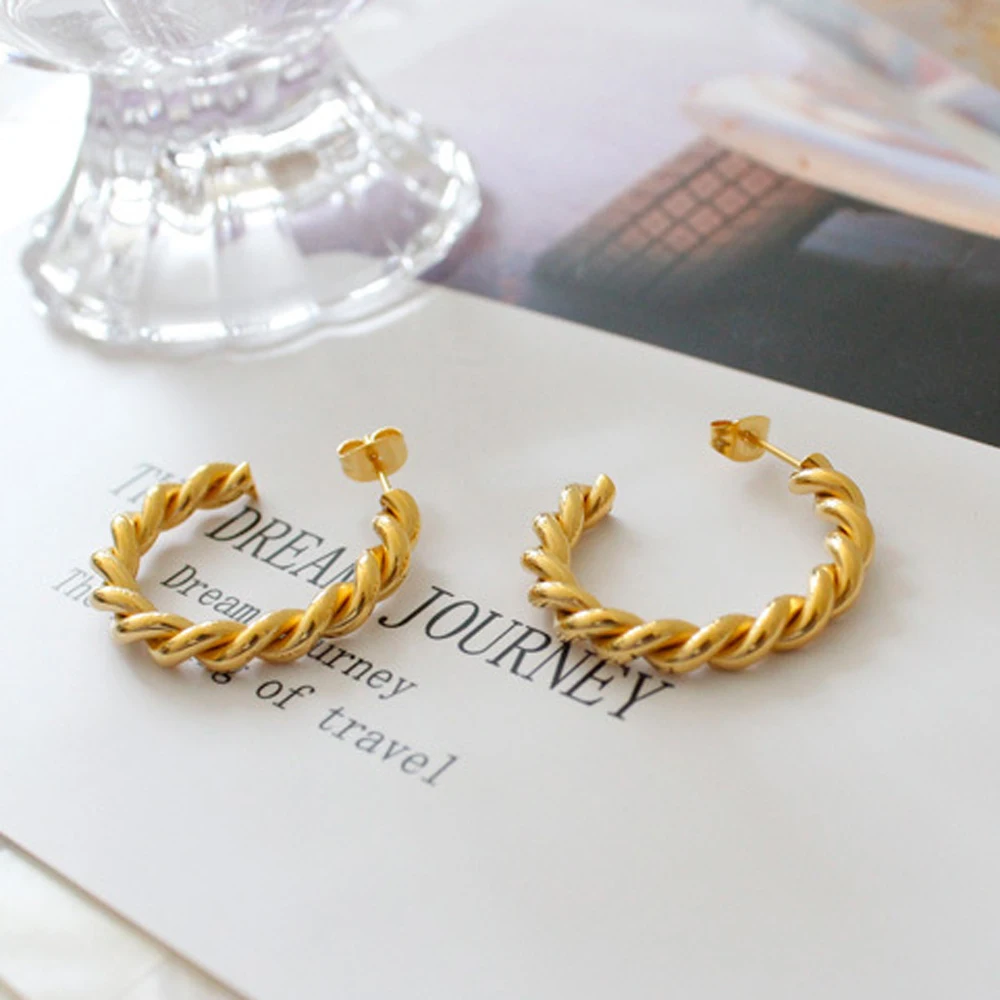 Модные витой Хооп серьги ювелирных изделий для женщин подарок Золото Тон Нержавеющей Стали вечерние Круг простой серьга оптом