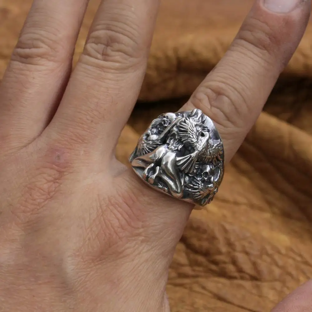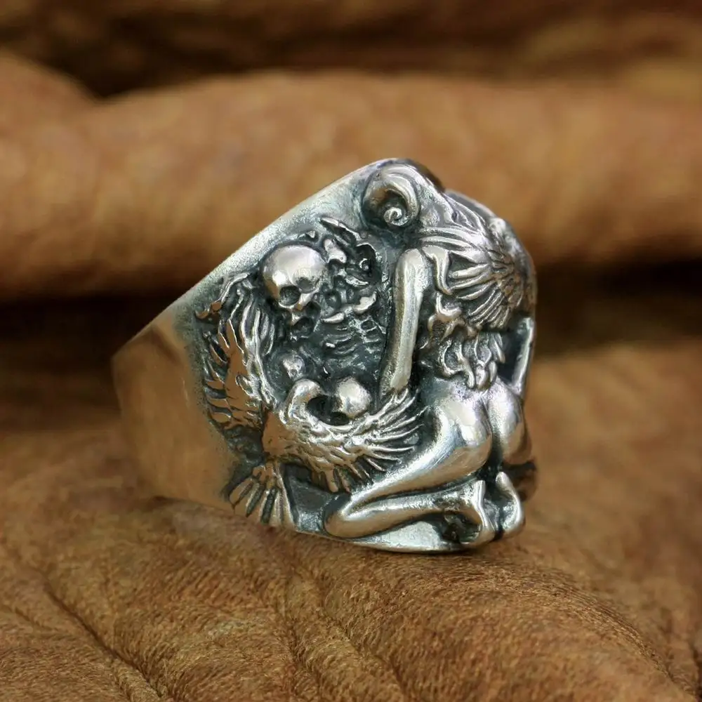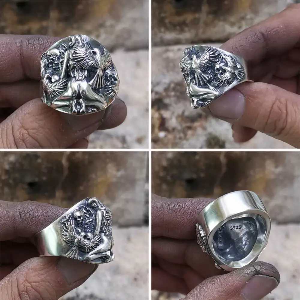 Сексуальная девушка череп кольцо 925 пробы серебряные мужские Байкер панк кольцо TA258 нам Размеры для возраста от 7 до 15