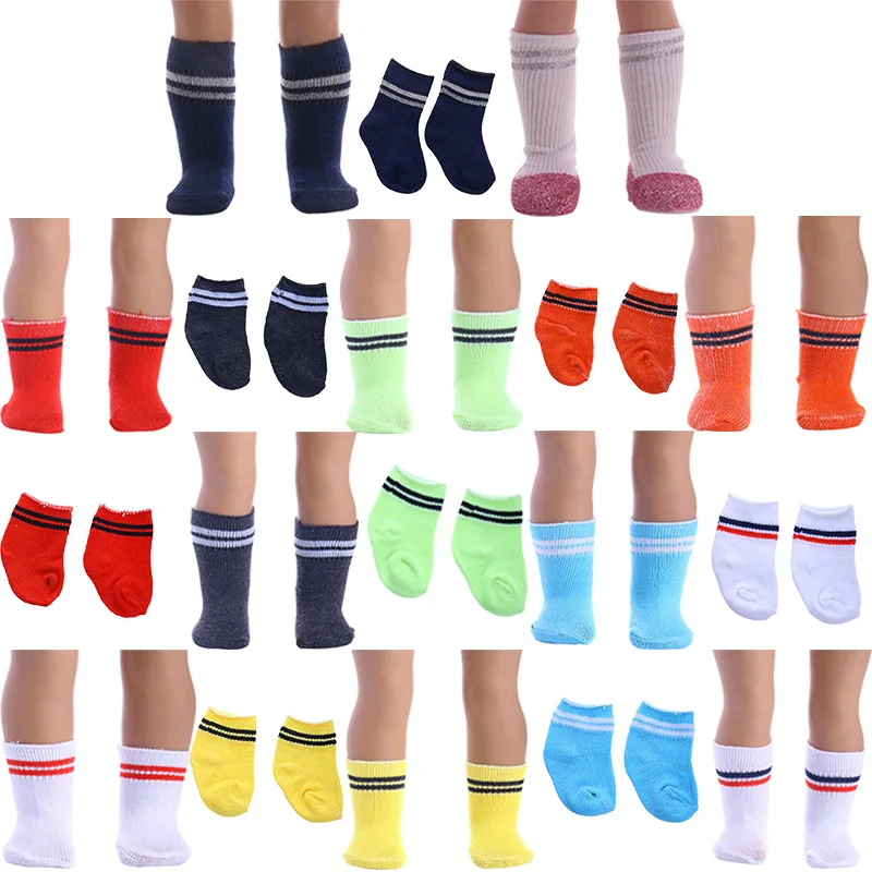 Носки для кукол, полосатые и однотонные, для кукол 18 дюймов, 43 см, для новорожденных, для повседневной жизни, Куклы нашего поколения