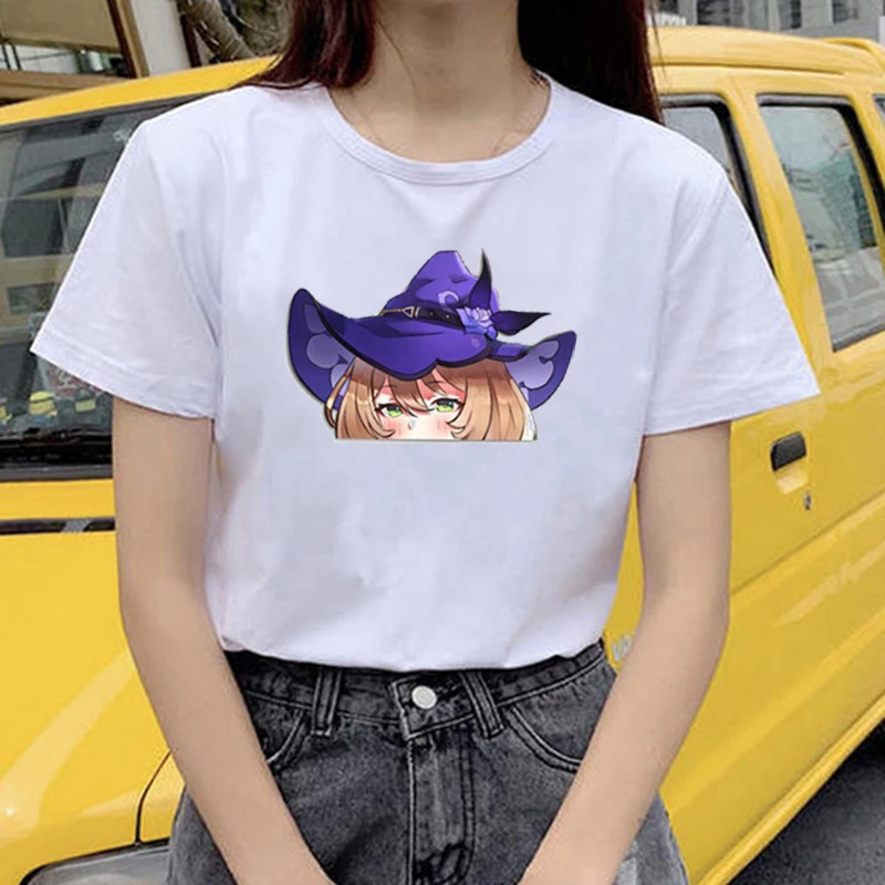 Женская футболка с принтом Genshin Impact, свободная футболка с коротким рукавом и воротником в японском стиле, топы в стиле аниме Харадзюку размера плюс, 5xl, Y2k