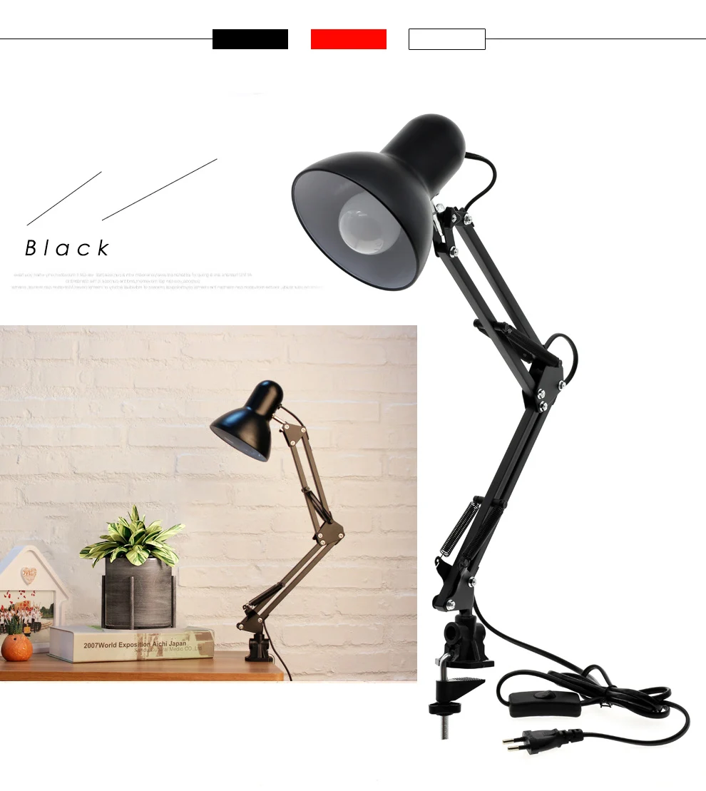Регулируемая Настольная лампа E27, светодиодная настольная лампа дл...
