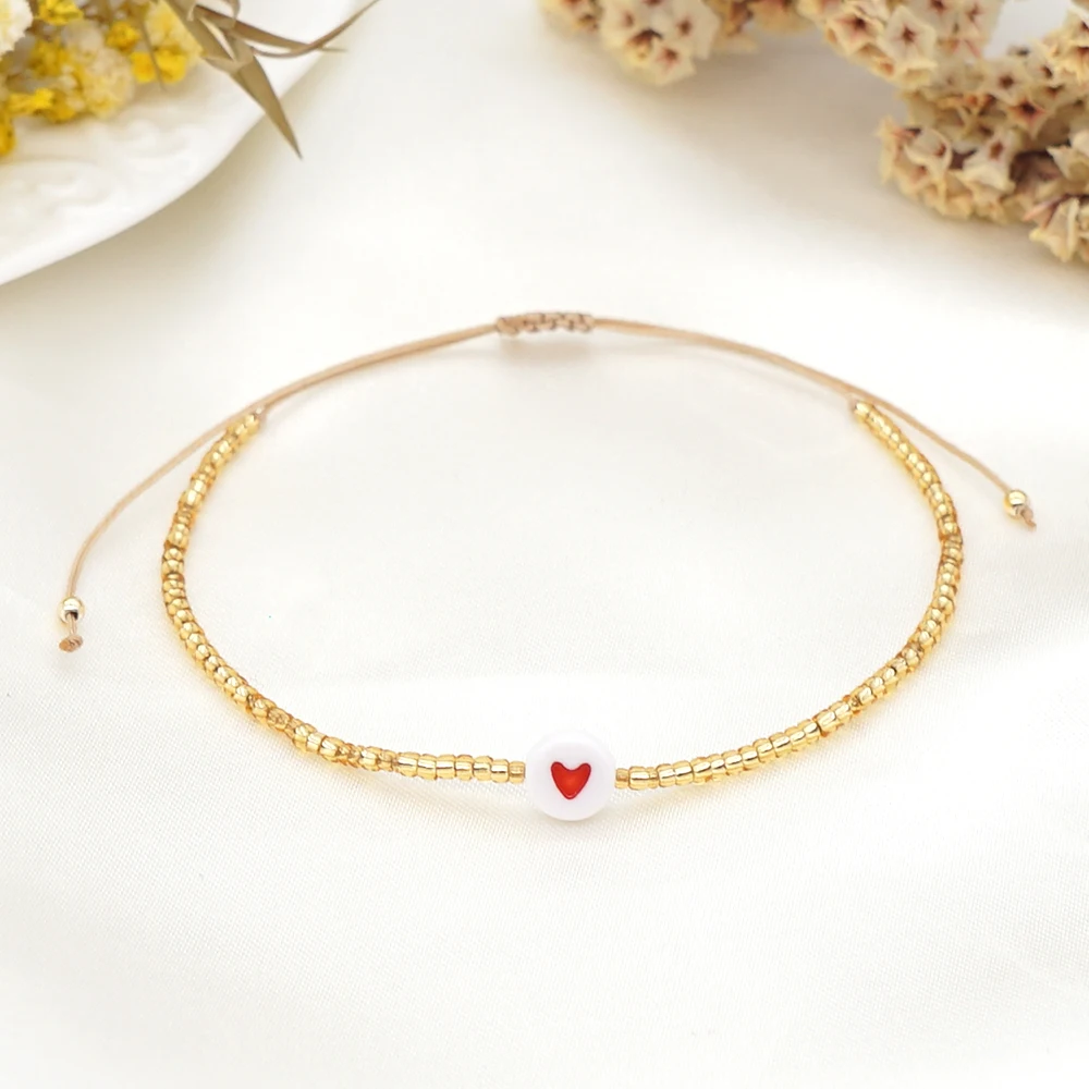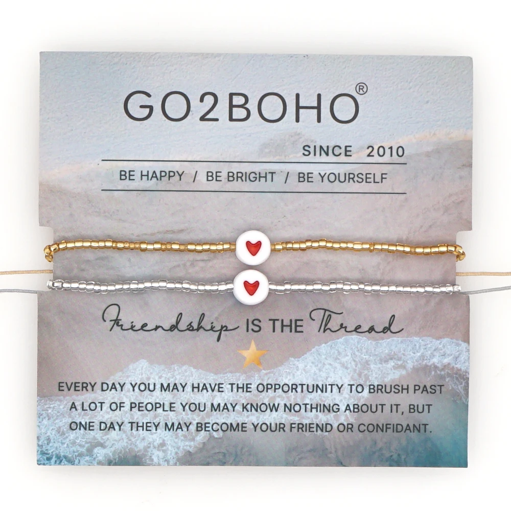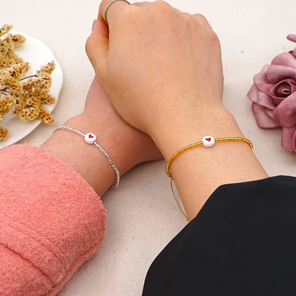 Браслеты Go2Boho с сердцем для пары, браслет 2021, подарок на день Святого Валентина, ювелирные изделия из бисера, регулируемый маленький браслет, оптовая продажа