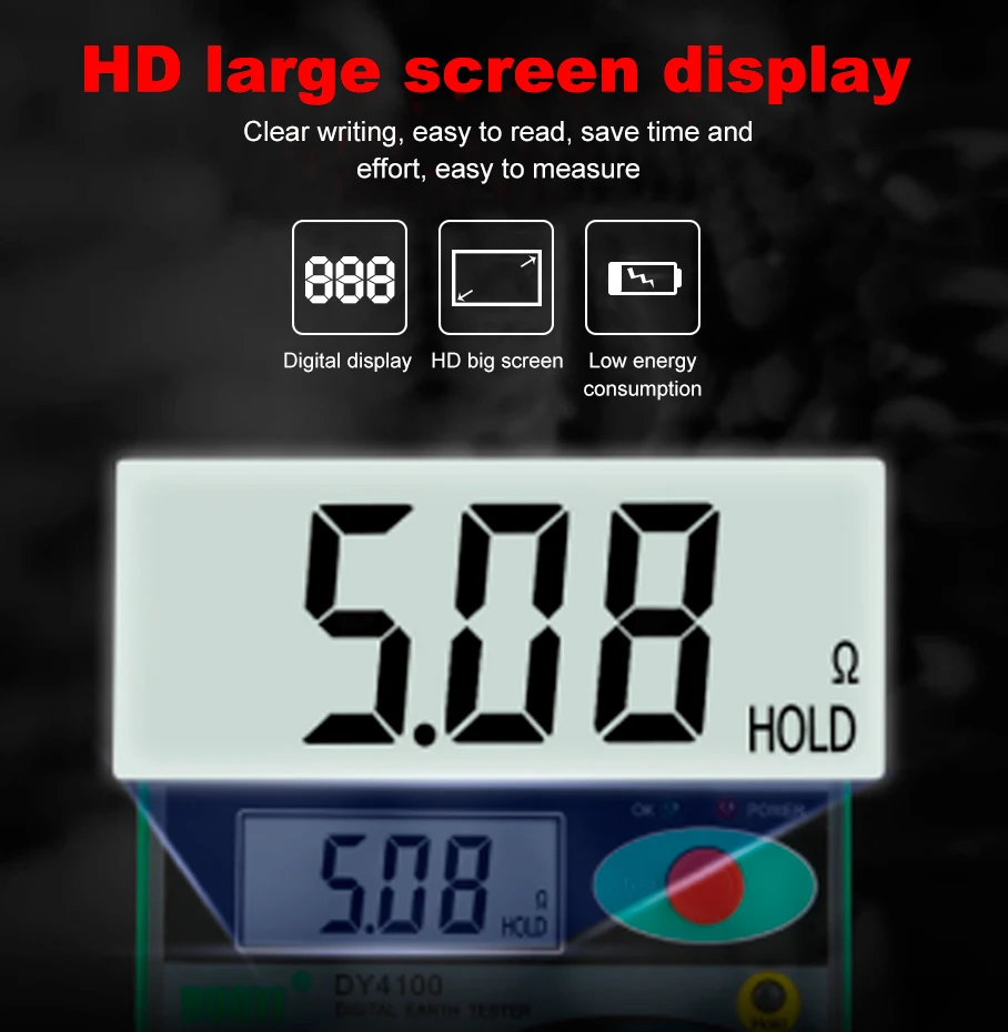 Тестер сопротивления DUOYI DY4100 настоящий цифровой измеритель заземления инструмент сопротивления заземления Мегаомметр 0-2000 Ом более высокая точность
