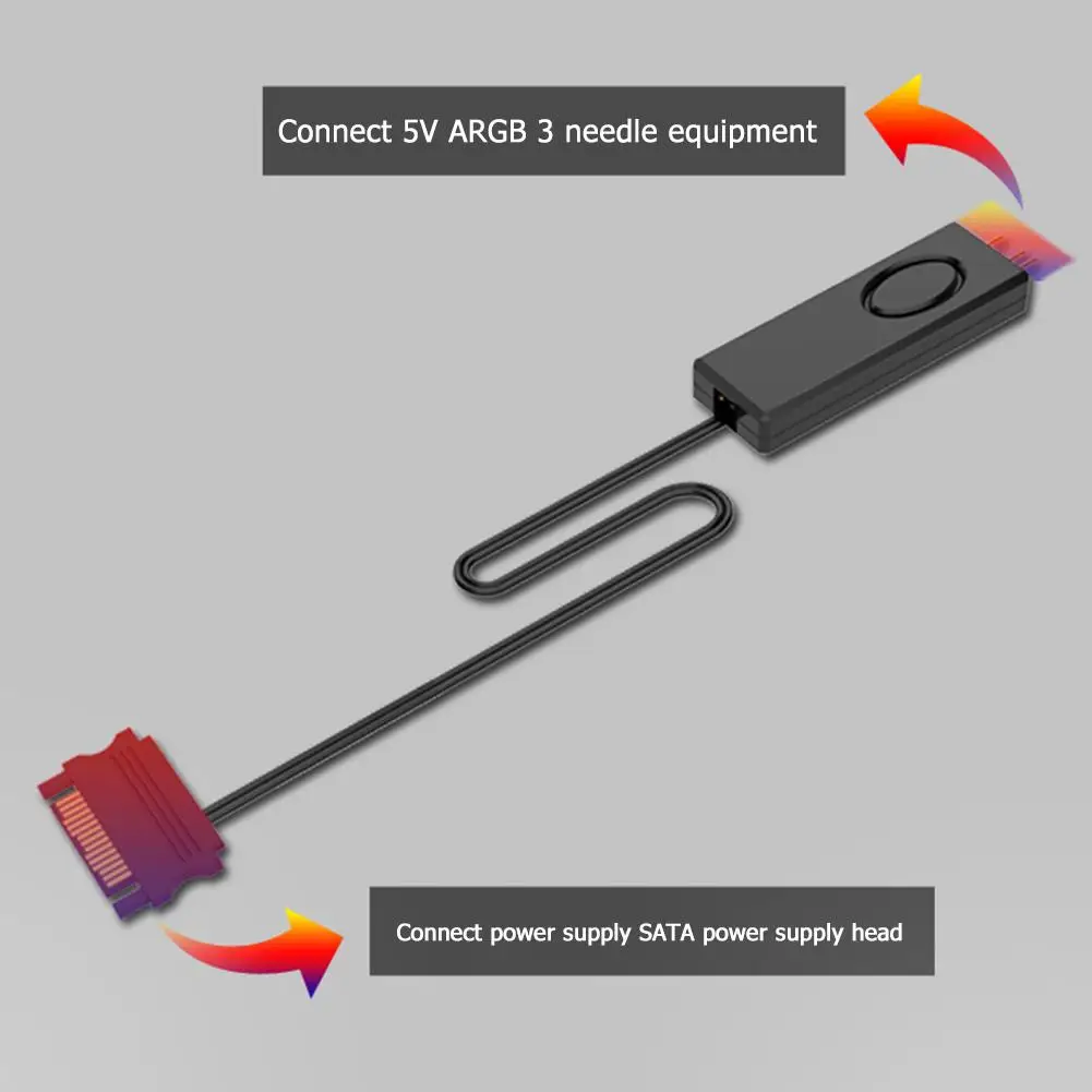 3Pin ARGB штыревой соединитель, в том числе SATA источника питания, один подключен к 5V ARGB 3Pin устройства, один подключен к SATA источника питания.
