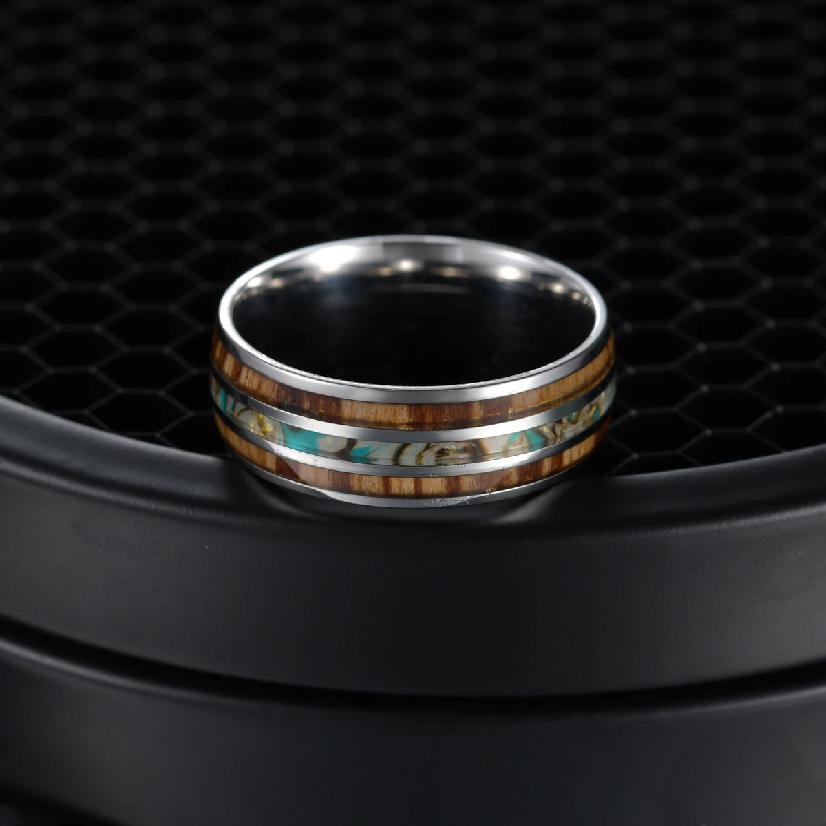 Серебряный Цвет Дерева КОА ушка декор полированная 8 мм ширина 100% из натуральной обручальное кольцо элегантность вольфрамовые карбидные кольца для мужчин