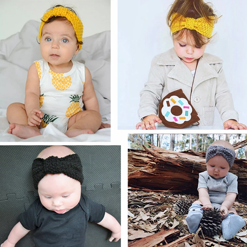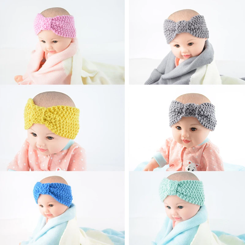 Детские вязаные свитера с бантом и повязкой на голову, новинка, лидер продаж, для маленьких детей; Вязаный крючком повязка на голову, модный защитный головные уборы аксессуары для волос