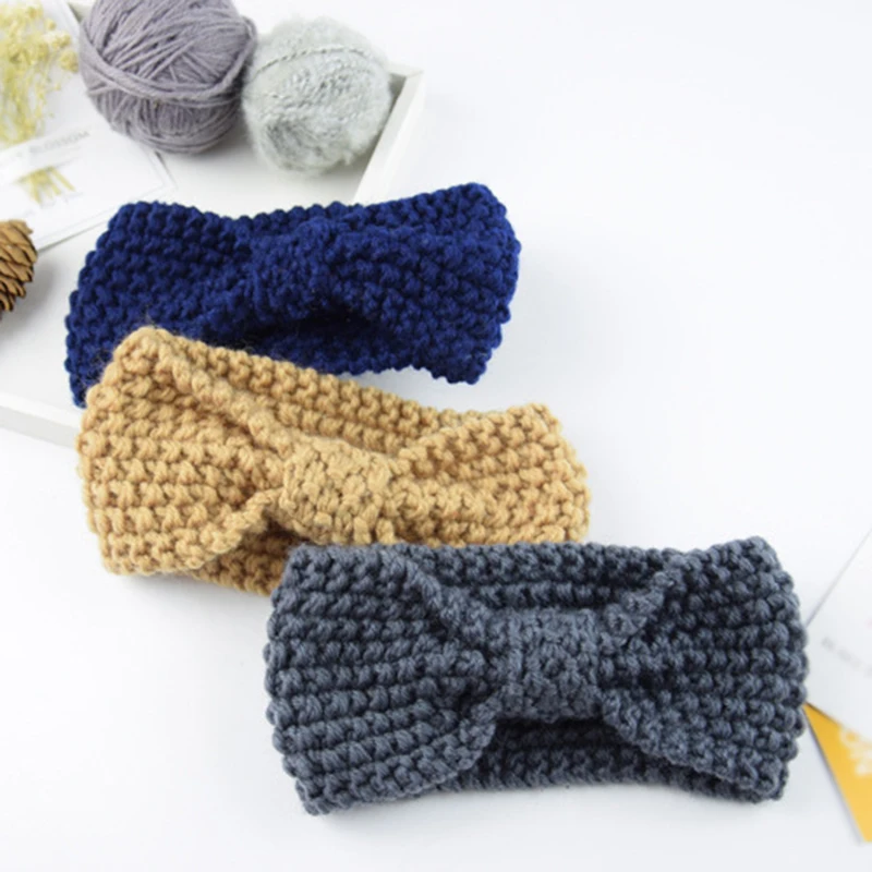 1 шт. вязаная для маленьких девочек вязаная повязка на голову с бантом модная резинка для волос Зимний Теплый головной убор