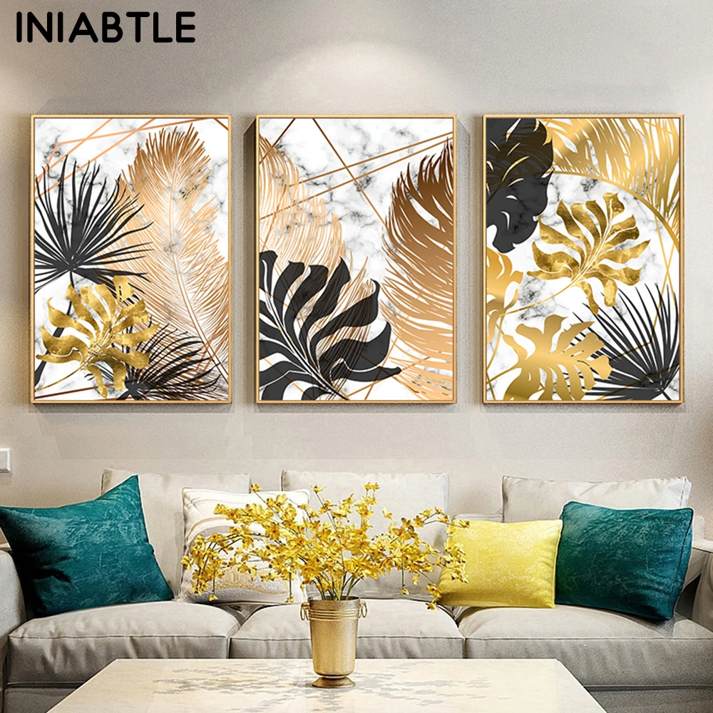Скандинавские растения Золотой лист холст картины плакаты под мрамор и принты абстрактные настенные художественные картины для гостиной дома современный декор