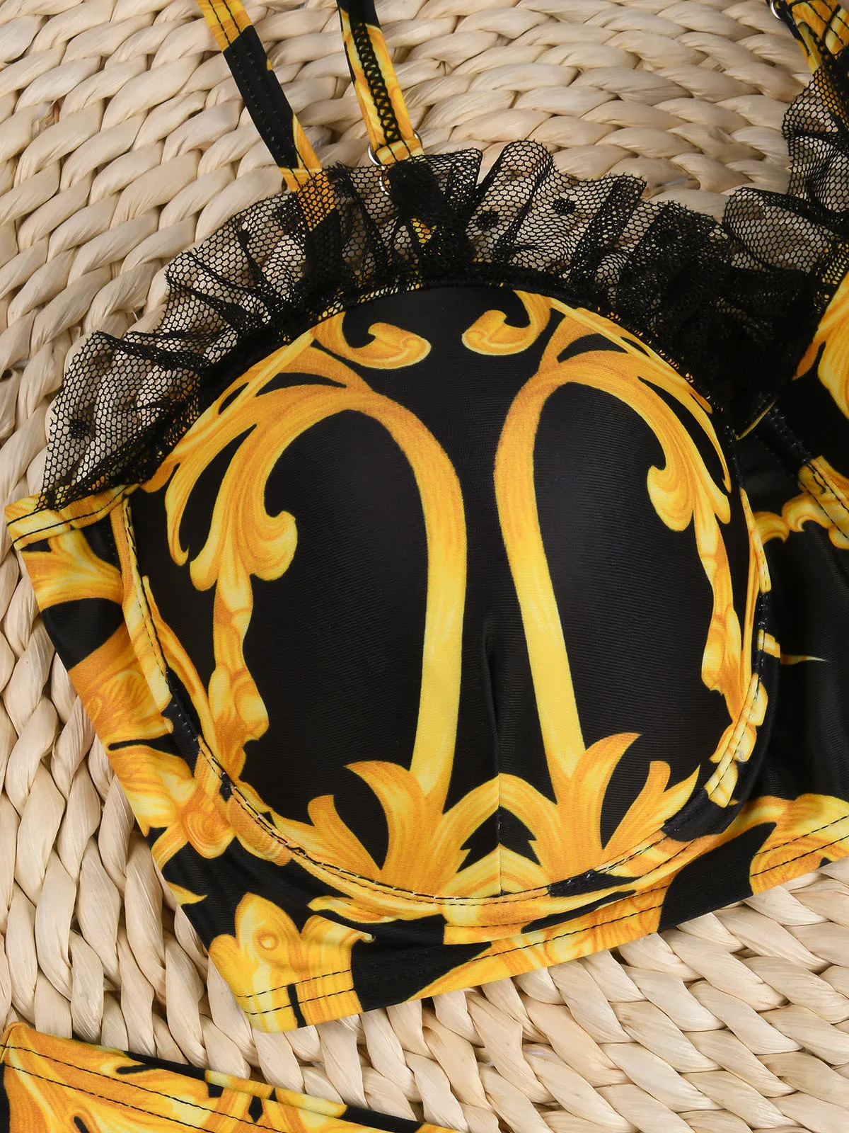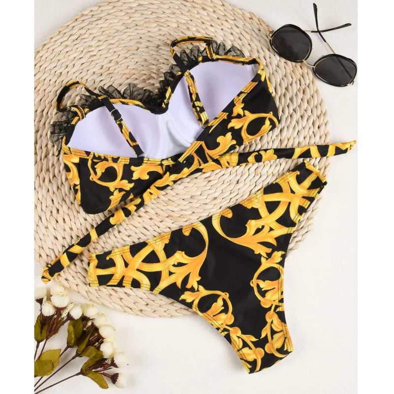 Кружевной Черный Принт сексуальное бикини женские купальники с пуш-ап Женская одежда для плавания купальный костюм для девочек пляжный комплект бикини для бассейна