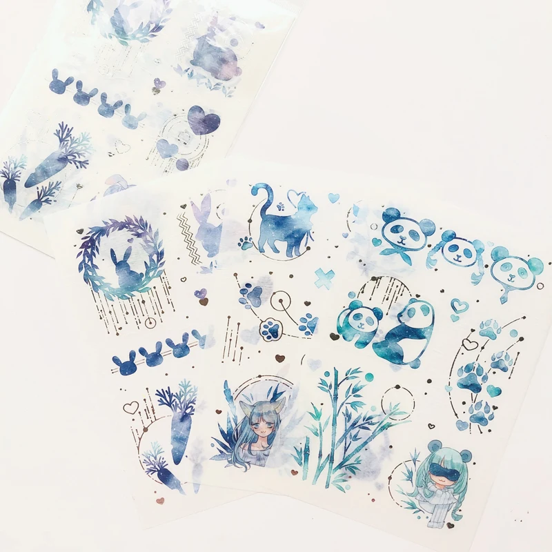 3 листа блестящих звездных цветов панда Кот бумажные наклейки ручной аккаунт Декор блокнот декоративные наклейки