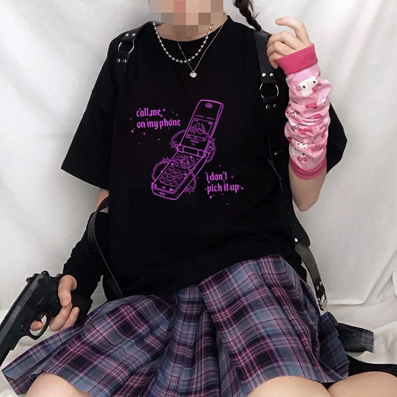 Топ женский в стиле Харадзюку, свободная винтажная Милая футболка в готическом стиле, в стиле панк, с мультяшным рисунком, уличная одежда для девушек, Y2K, летний
