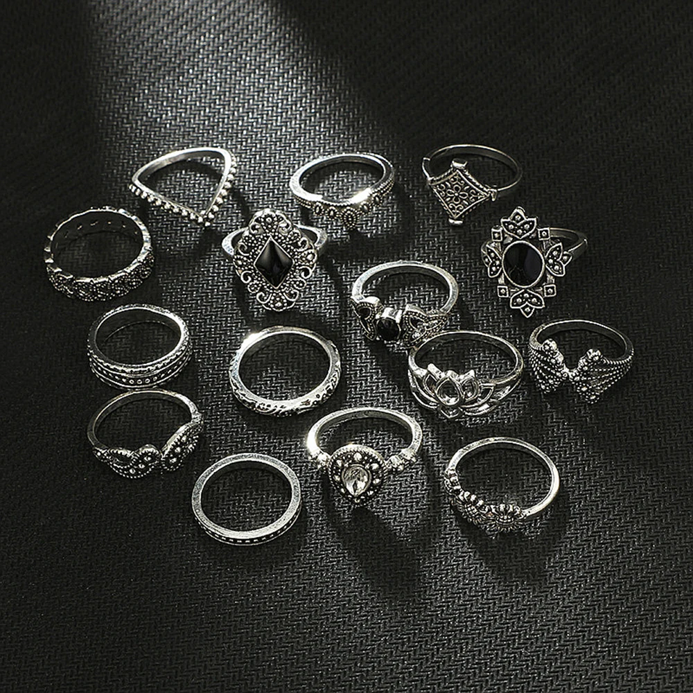 Набор женских колец, 15 шт.компл., в богемном стиле, с изображением цветка лотоса