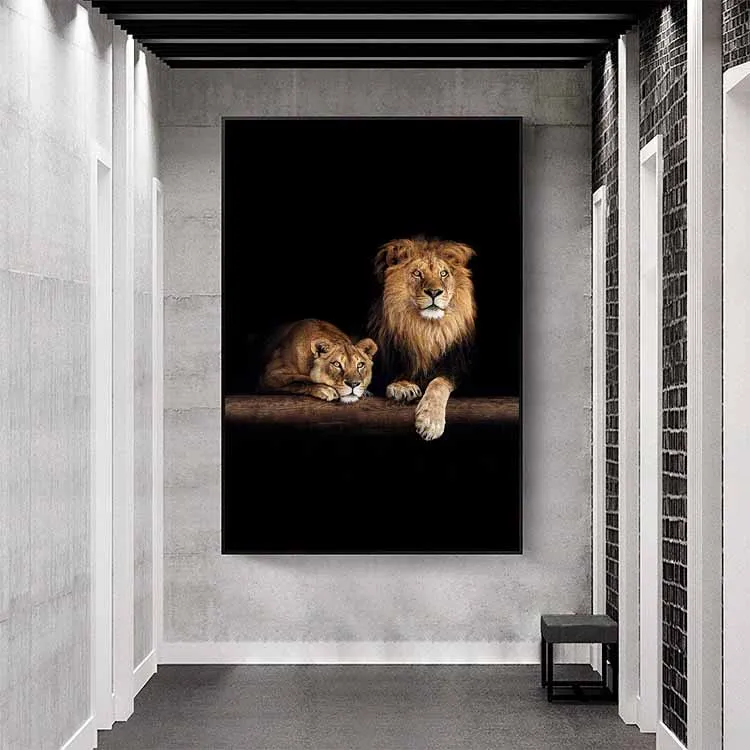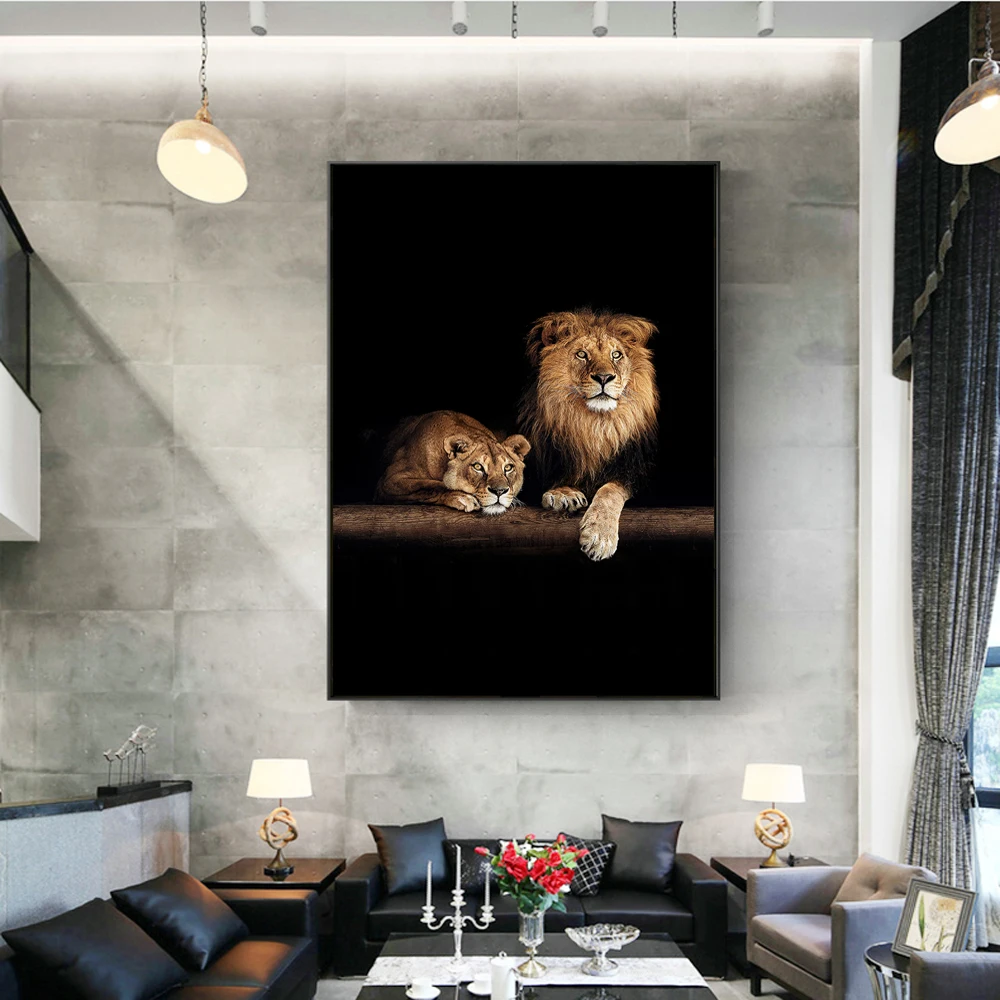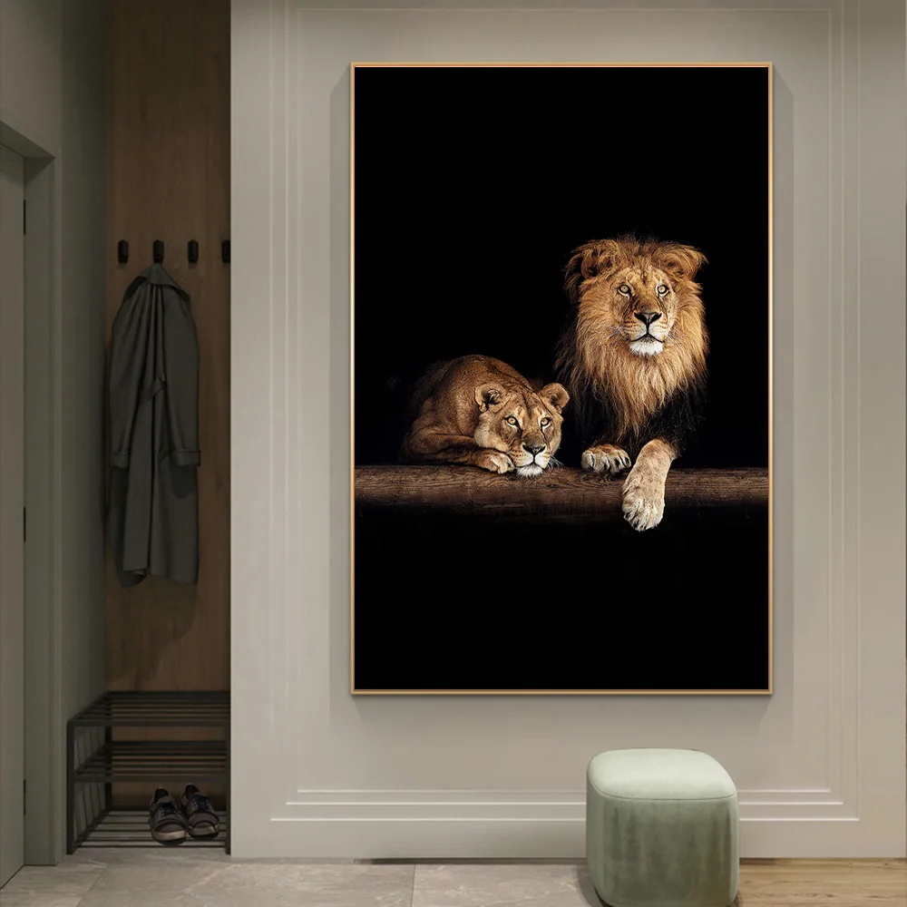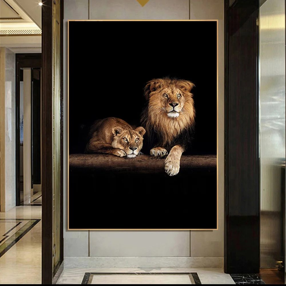 Картина на холсте с Африканским львом и львом в темноте, Настенная картина с дикими животными, современный постер для украшения гостиной