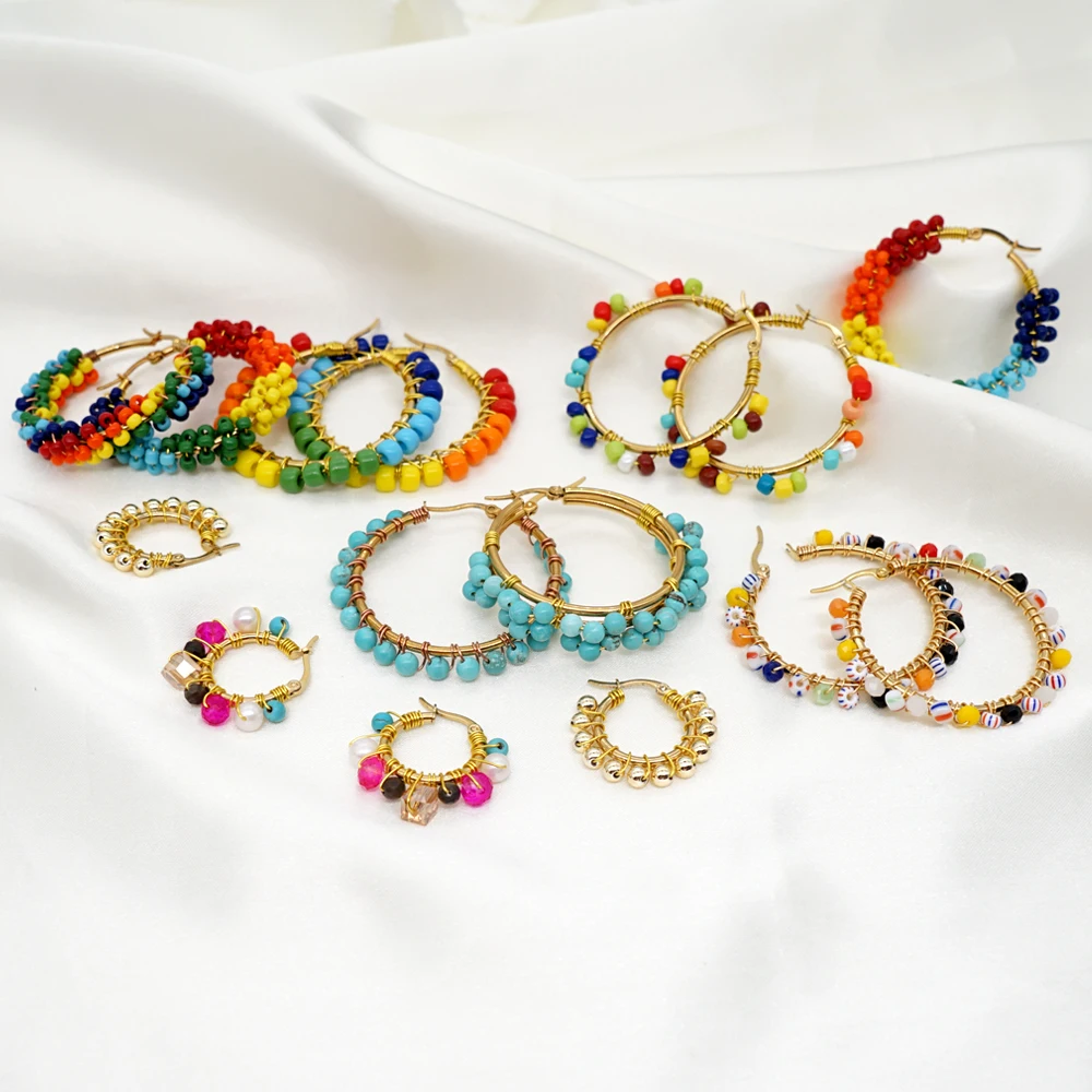 Go2Boho серьги-кольца с бусинами, богемные серьги-кольца из натурального камня, ювелирные изделия в стиле бохо 2021, женские серьги из нержавеющей стали, круглые