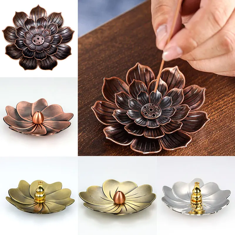 Ретро подставка для ароматических палочек сплав лотоса линия курильница для благовоний в Изделия из металла сандалового дерева катушки база красная бронза Офис украшения
