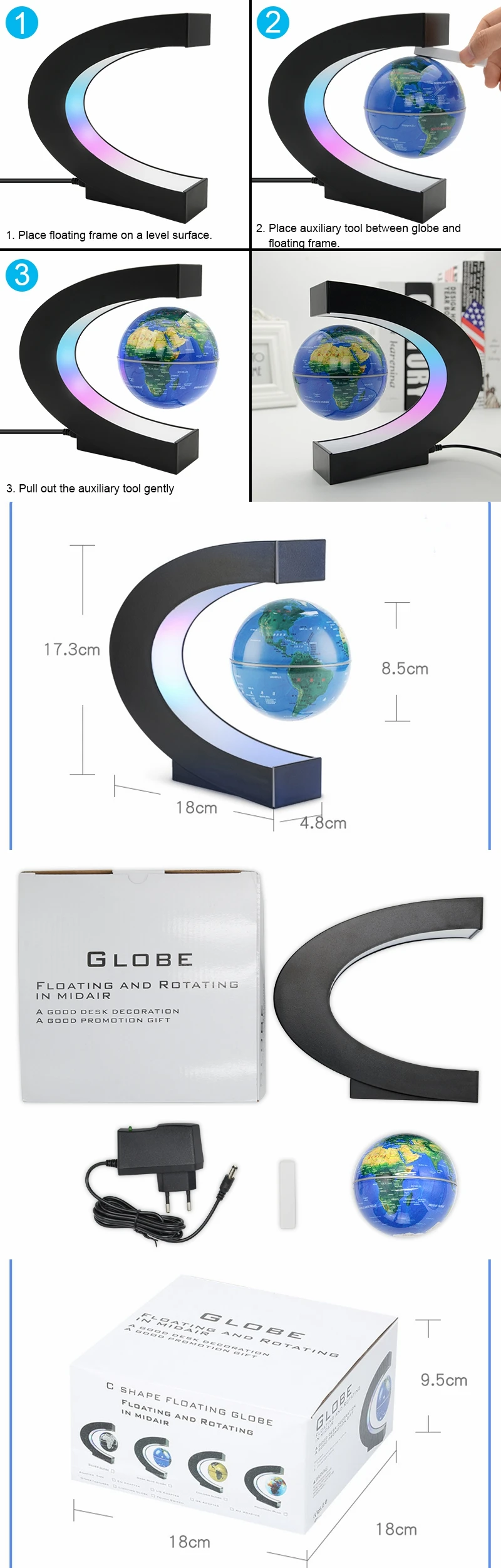Обновленный стиль шара 105 мм: c-образное основание светит, а Сфера автоматически меняет цвет, и сфера будет вращаться во время изменения цвета.