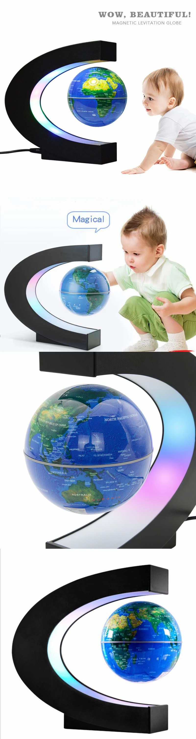 3D креативный Магнитный Плавающий ночник - глобус , левитационная карта мира, Шариковая лампа для малышей, детский день рождения, новогодний подарок, Декор дома и офиса