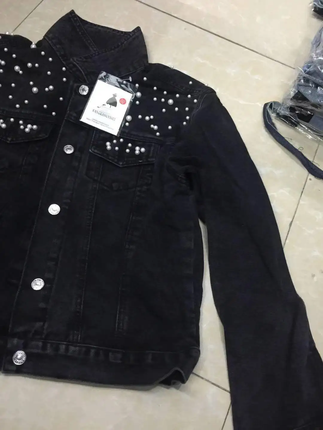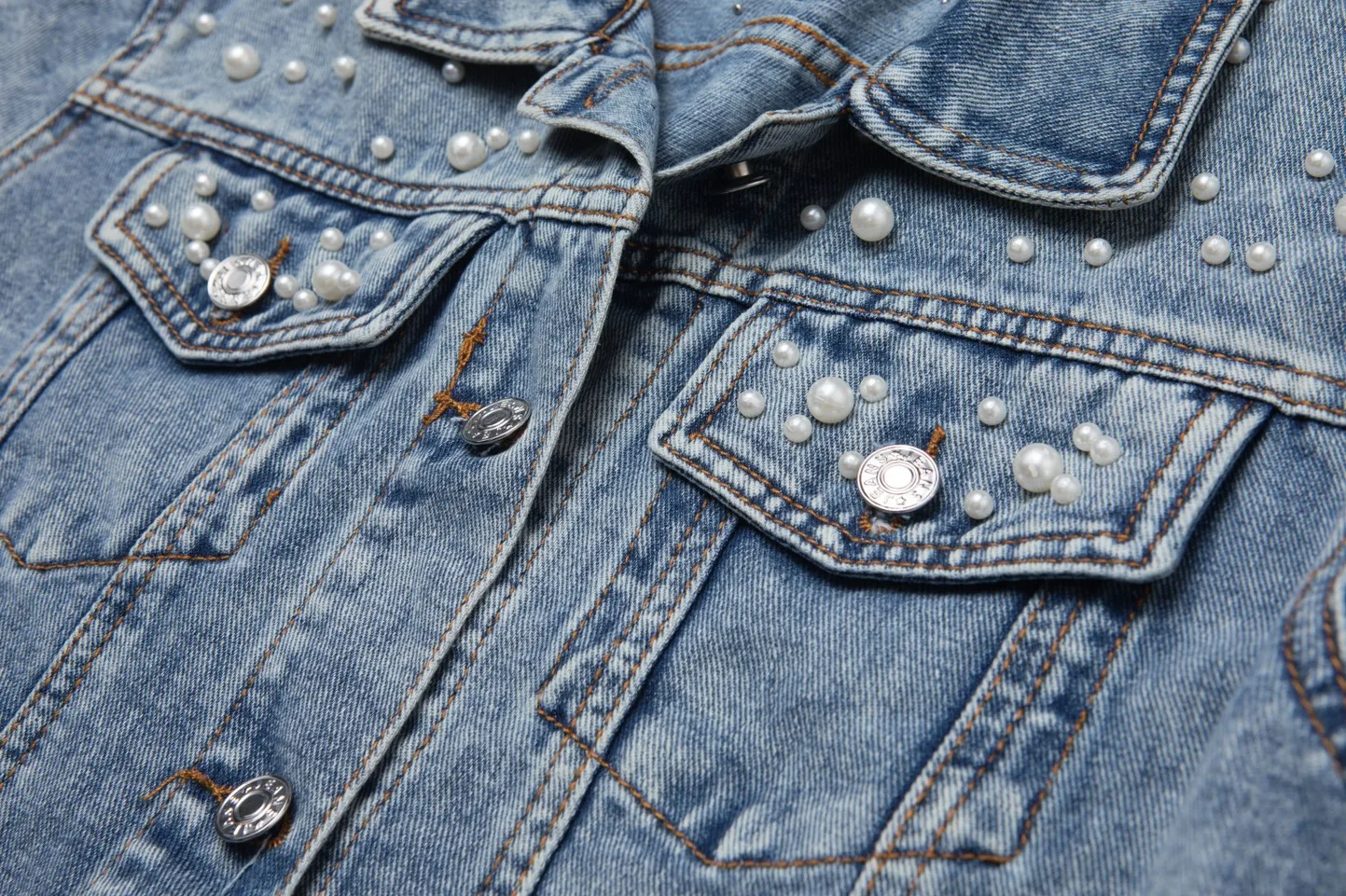 Женская джинсовая куртка FNOCE, короткая джинсовая куртка с длинным рукавом, украшенная жемчугом, в уличном стиле, 2020