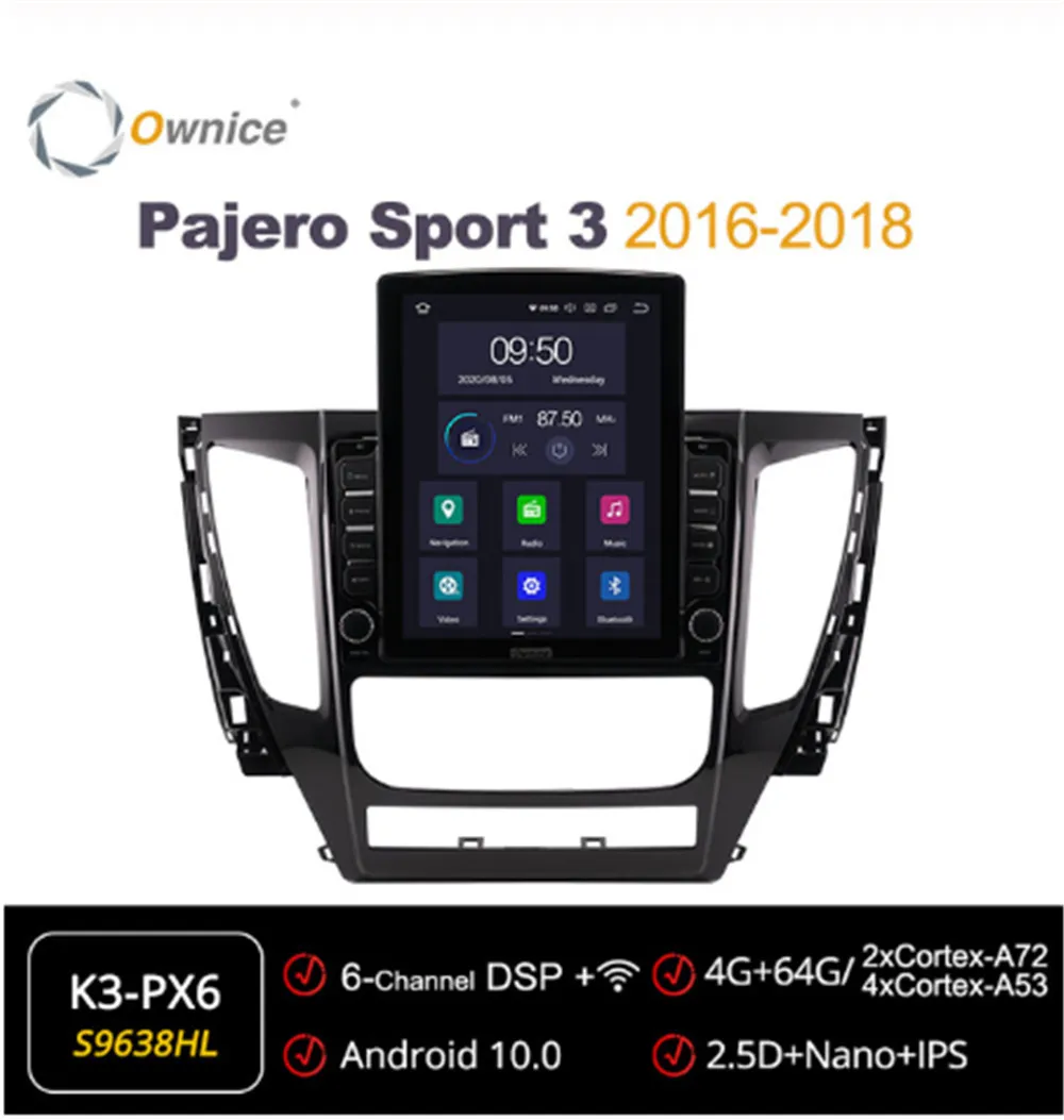 Автомагнитола Ownice Octa 8Core, Android 10,0, 2 Din, с GPS, стереоплеером, в стиле Tesla, forMitsubishi, Pajero Sport 3 2016 - 2018