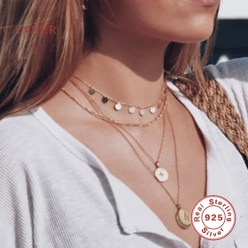 CANNER Настоящее серебро 925 пробы ожерелье для женщин четыре угла круглый узор ювелирные изделия, цепочка с подвеской 18K Bijoux воротник Joyero