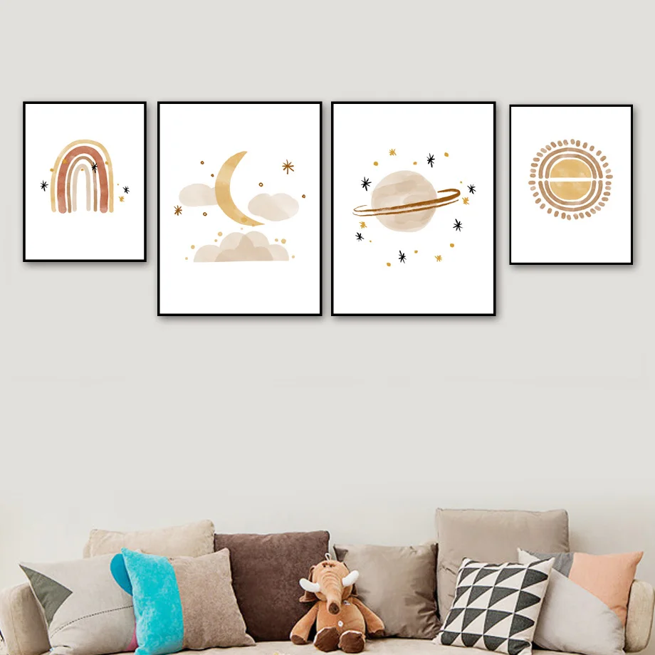 Мультфильм планеты ракеты Радуга Солнце Луна облако питомник стены искусства холст живопись плакаты и принты Декор фотографии детская комната