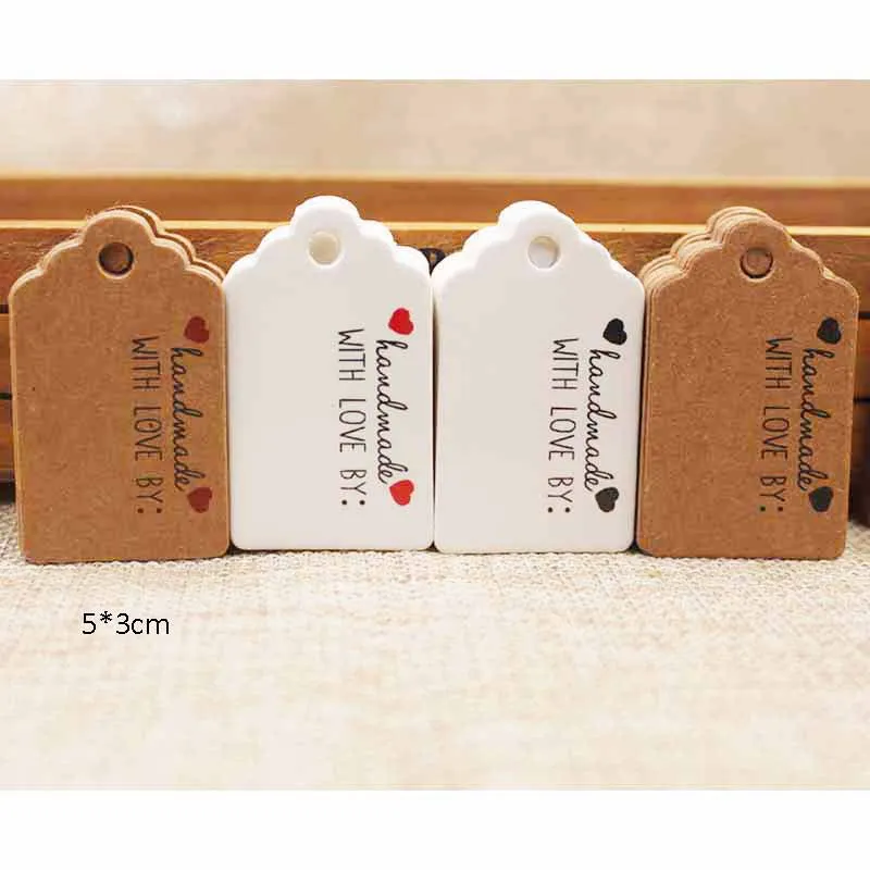 5x3 см крафтбелый DIy бирка с красным сердечком, Подарочная бирка, ...