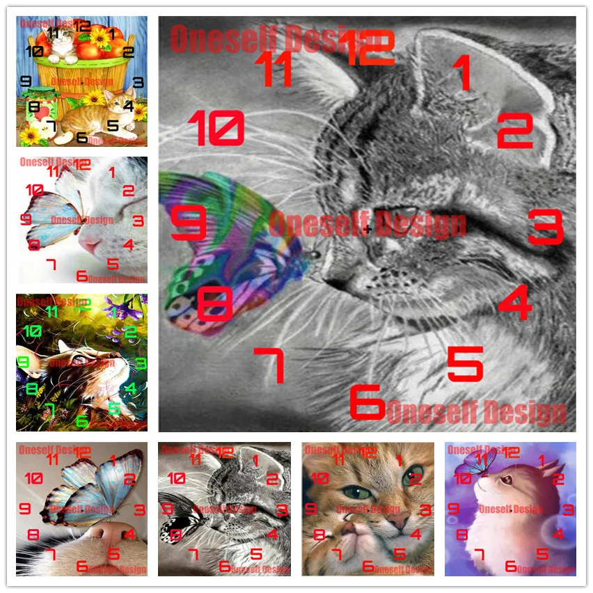 Популярная 5d алмазная картина с часами цветная кошка 5d алмазная в...