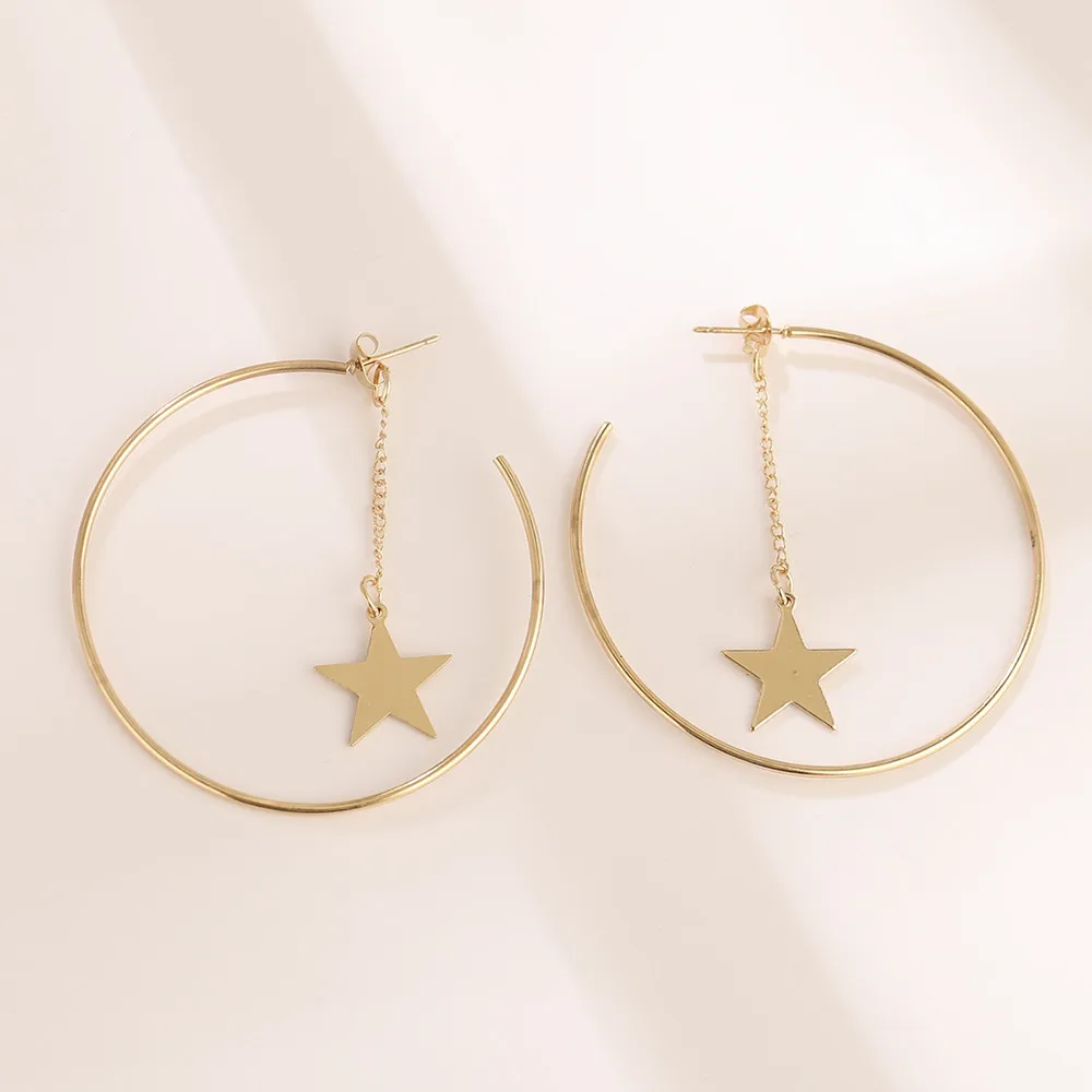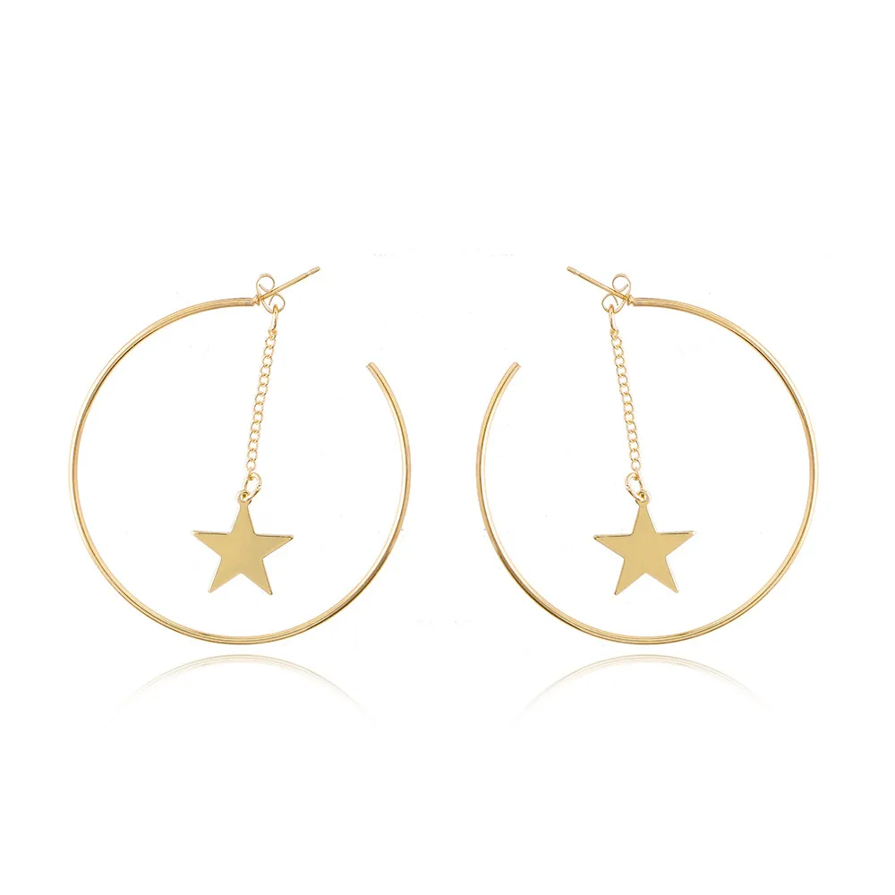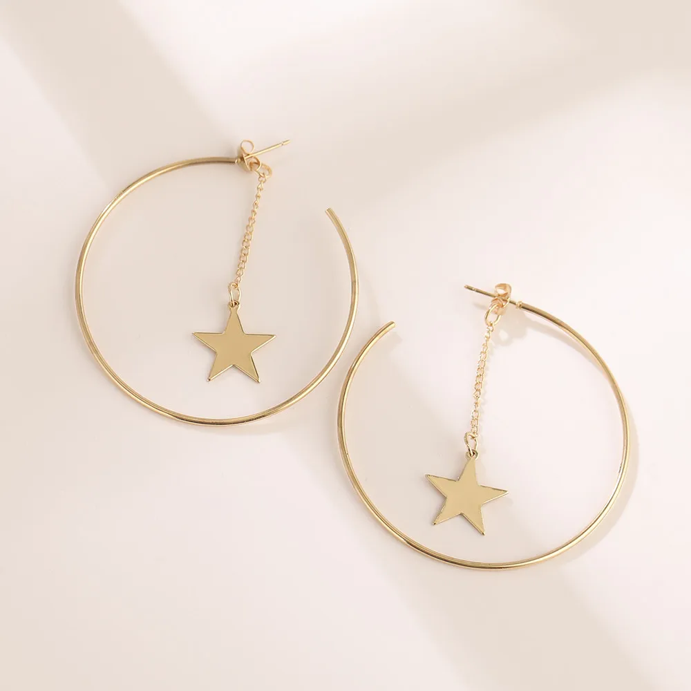 Геометрические Металлические Круглые Подвесные серьги-кольца Lost Lady, висячие серьги со звездой, оптовая продажа ювелирных изделий, женская бижутерия, подарки для вечевечерние