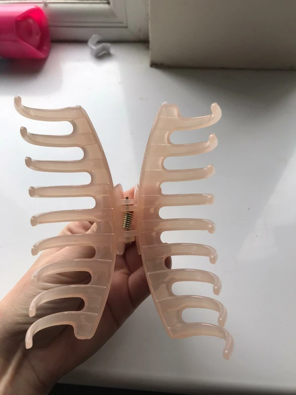 Заколка такая же как и на фото, удобная. Пучок волос держит хорошо. Единственное,что не понравилось - сильный и неприятный запах, держался около двух дней