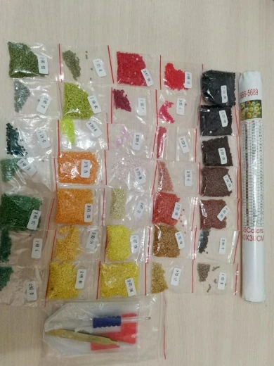 5 звезд поставила за оперативность и классный подбор колеров -яркие, насыщенные, полный комплект-целых 45 оттенков. Я никак не ожидала такого удобного стилуса на 1 и 4 страза, отдельно придается насадка на 10 страз, и прямой пинцет золотого цвета. Но размер изображения несколько меньше от заявленного - не 40х50, а 38,5х48.5. Не критично, думаю. Спасибо, рекомендую.