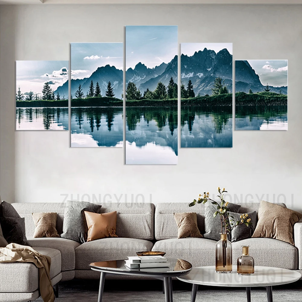 Холсте 5 шт. Чили горное озеро пейзаж живопись холст HD печати стены искусства для Гостиная Спальня домашний декор