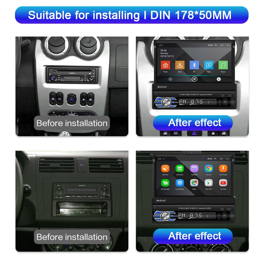 Выдвижной стереоприемник Hikity 1Din, Android 7 '', автомобильный м...