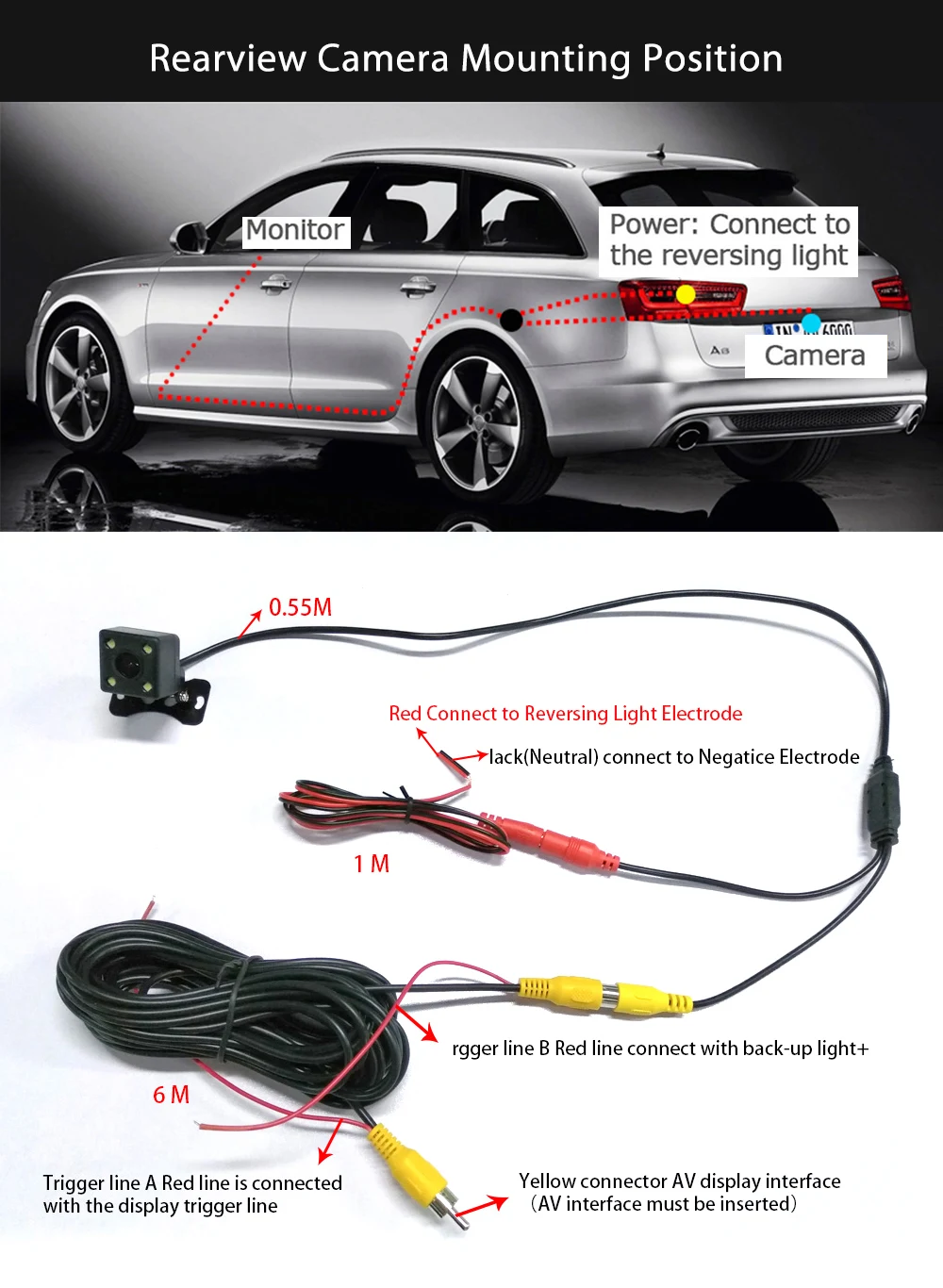 6. Функция ввода камеры заднего вида (опционально): необходимо выбрать камеру, при подключении к резервной камере автомобиля, автомобильный стереомонитор автоматически включится в детали заднего вида (требуется дополнительно)