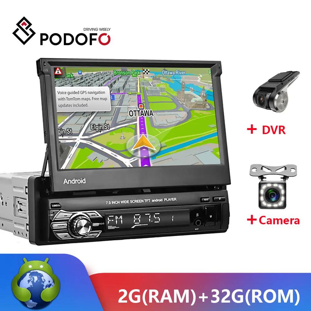 Автомагнитола Podofo 1DIN, Android, выдвижной экран 7 дюймов, мульт...