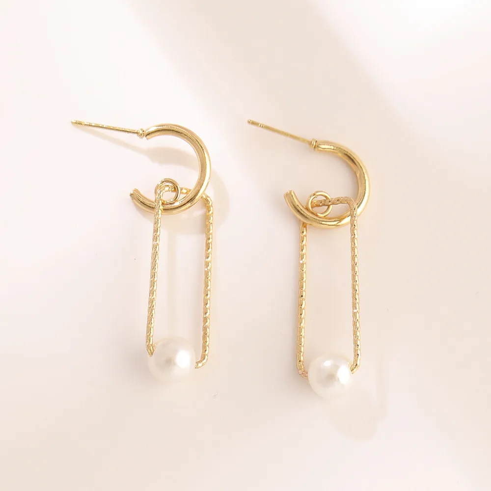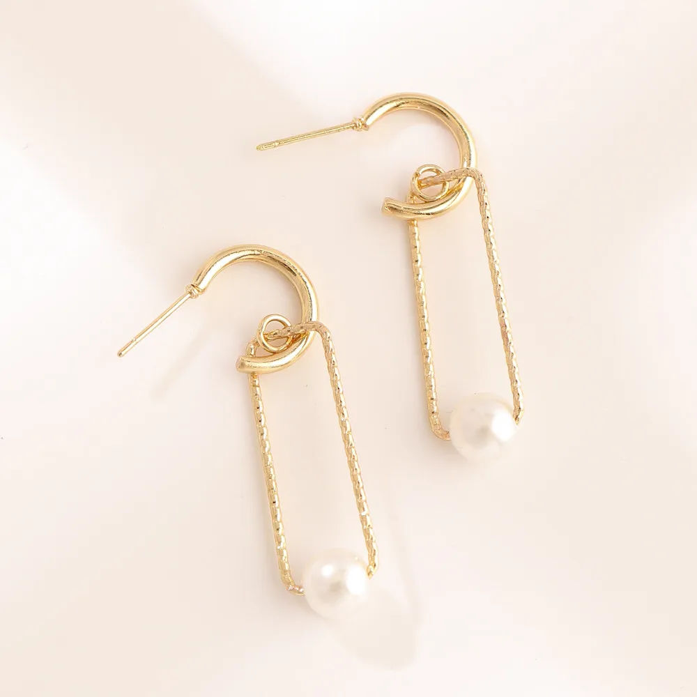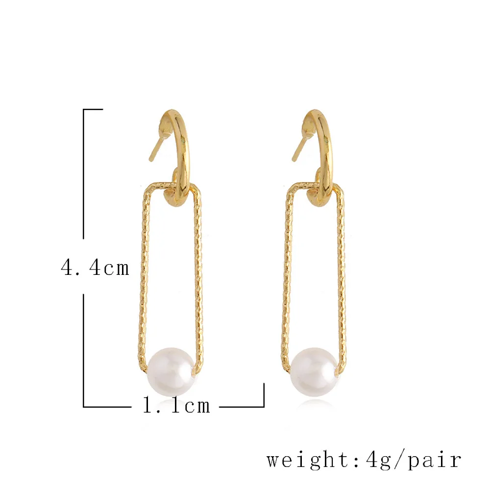Винтажные висячие серьги Lost Lady с искусственным жемчугом, длинные геометрические прямоугольные металлические крупные серьги, оптовая продажа ювелирных изделий