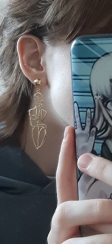 заказала 4 пары разных сережек. первые - человечки. легко надеваются на крючок, не особо тяжёлые. вторые (самые желанные) - крупные лица... то есть, реально крупные) прилипают к лицу и к уху, но, думаю, во время носки можно привыкнуть. эти уже довольно тяжёлые, иголка толстая, застежка резко застегивается. третьи - женщины. застежки очень туго идут, иголка тоже довольно толстая, сами серьги не тяжёлые. четвёртые - туловища женщин. лёгкие, там все нормально) в общем виде все устраивает. видно, что серьги отдают палёной желтизной, но блестят они красиво ;) 9/10 (за проблемные застежки)