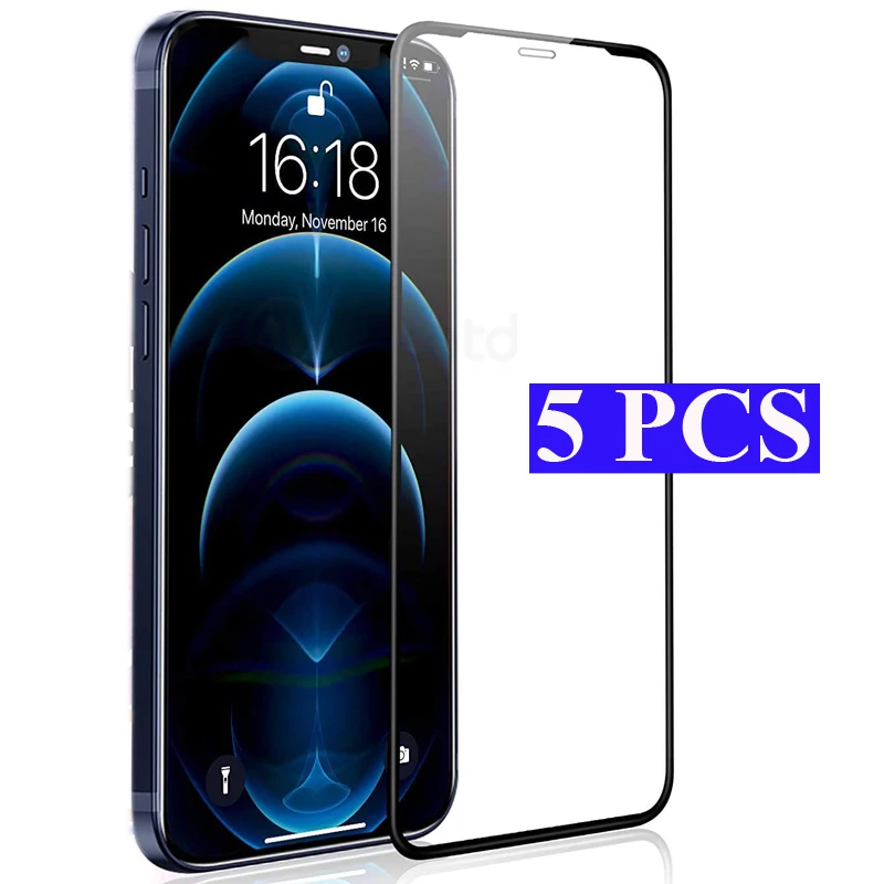 5 шт.лот полное покрытие закаленное стекло для iPhone 12 6,1 дюймов защита для экрана Защитное стекло для iPhone 12 Pro 9H HD стеклянная пленка
