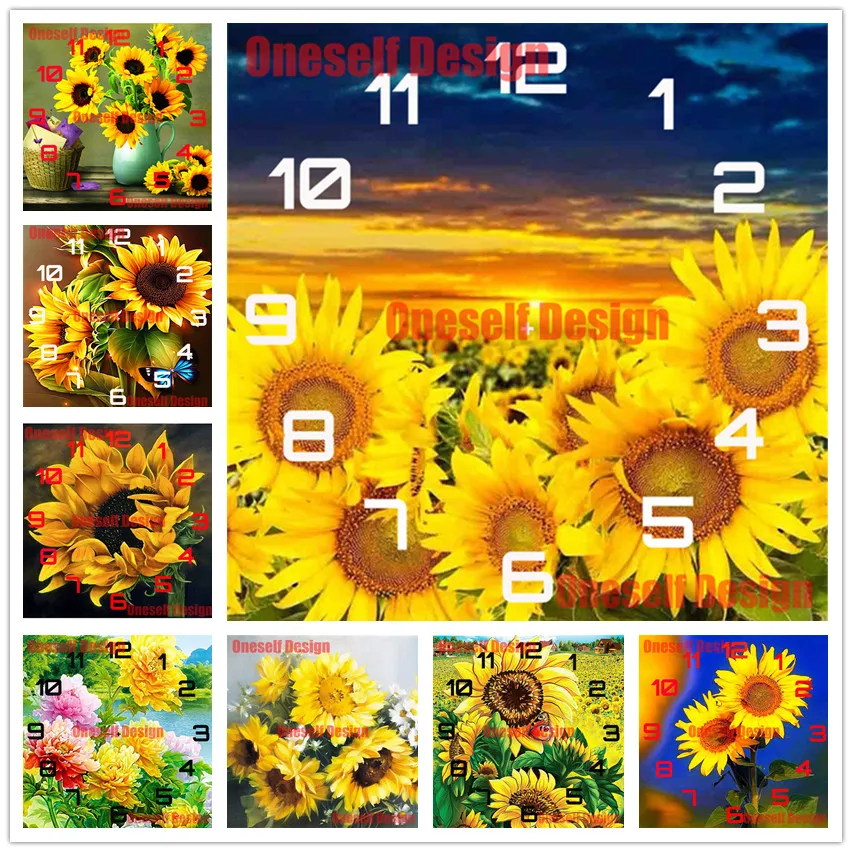 2021 Подсолнух 5d алмазная живопись часы Бриллиантовая фотография подсолнуха украшение для дома алмазная живопись набор для творчества