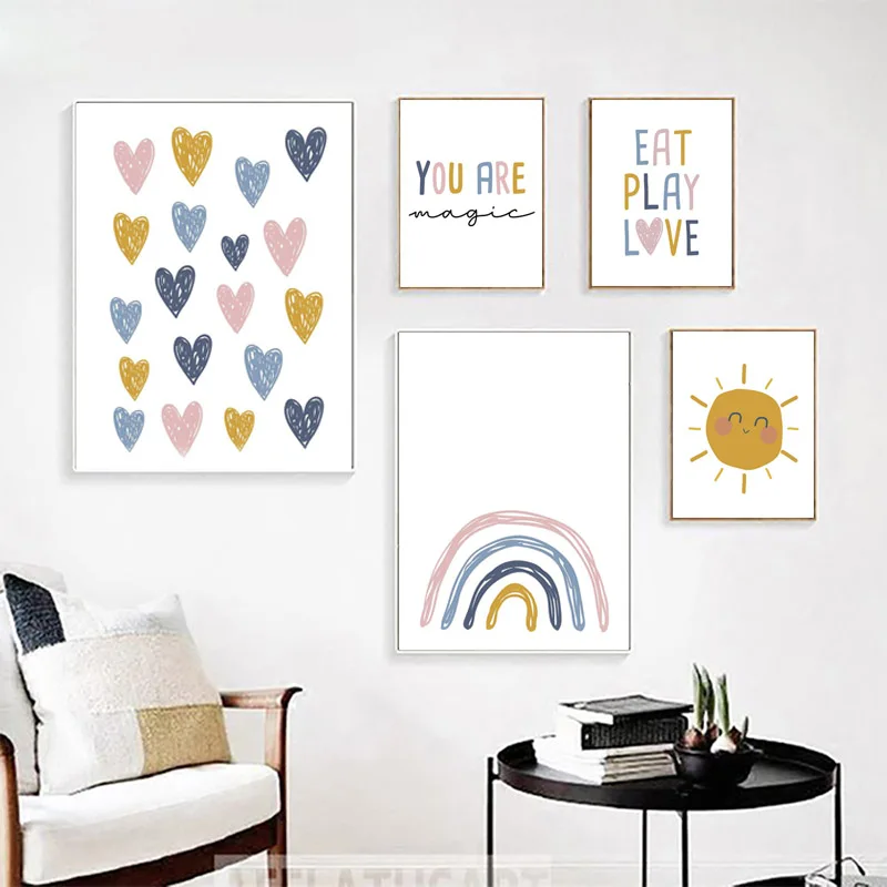 Мультфильм солнце Радуга плакаты и принты детская комната стены искусства постер украшение картина Детская комната искусство для детской спальни