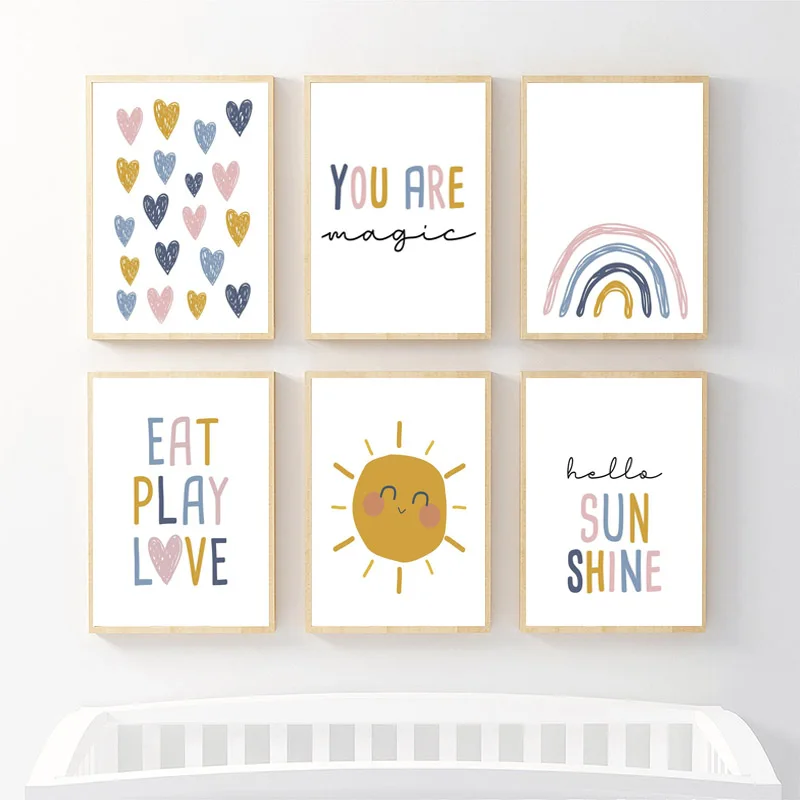 Мультяшные солнце Радуга плакаты и печать детской комнаты настенный...
