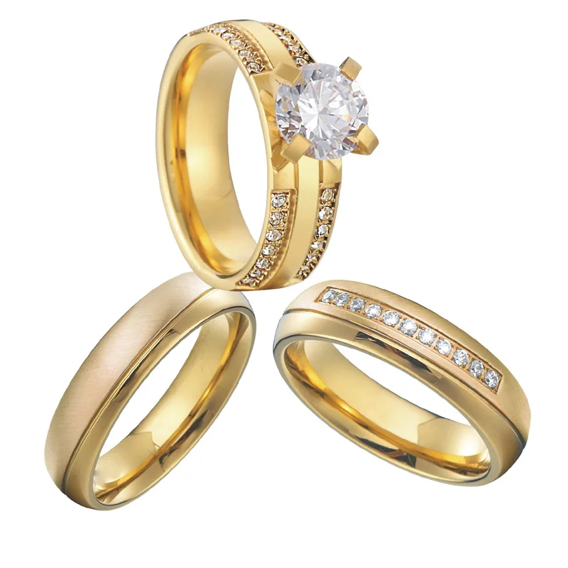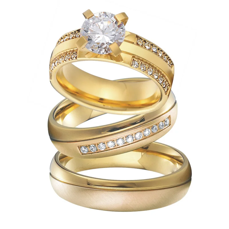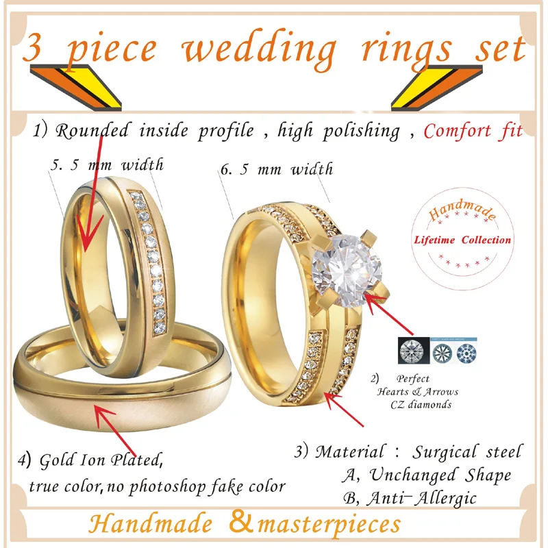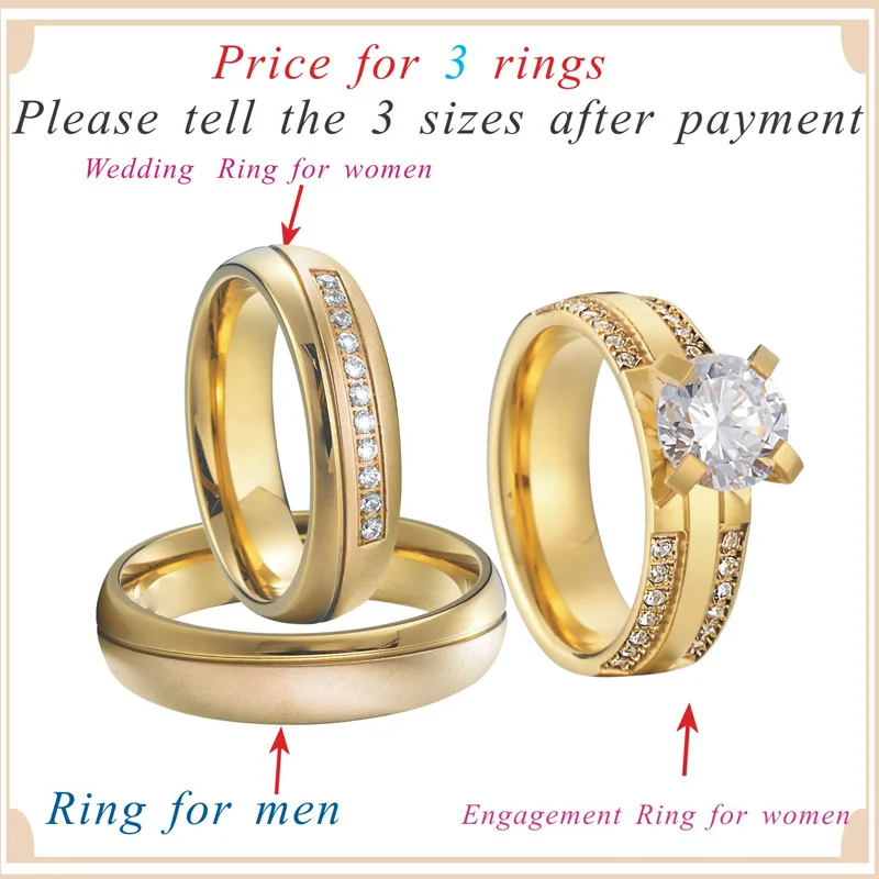 Роскошные 3 шт. 18k позолоченные Свадебные обручальные кольца для женщин набор для Для мужчин и Для женщин Для мужчин Lover's Альянс Циркон Обручение Для мужчин t кольцо свадебный подарок