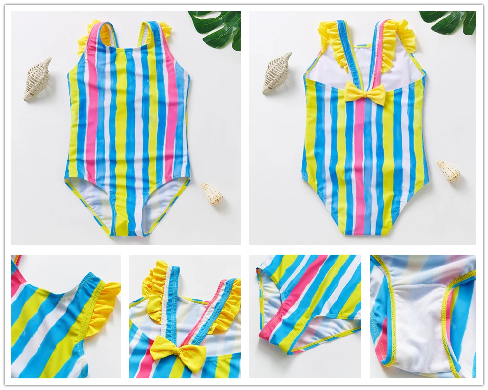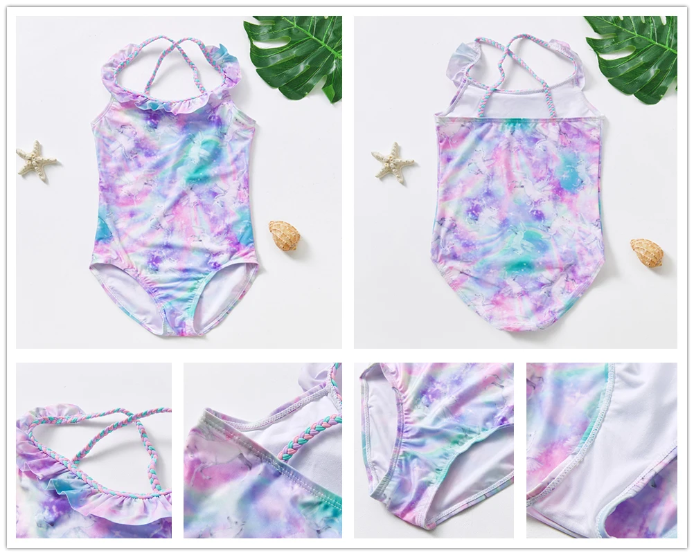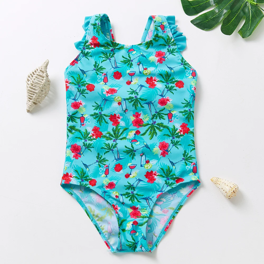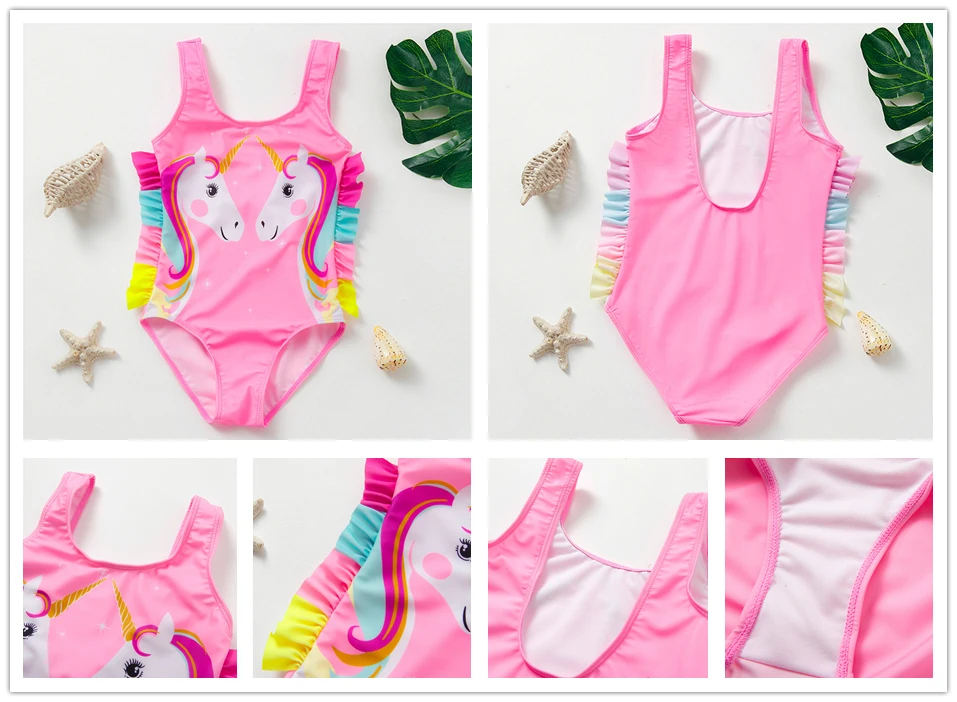 Купальник для маленьких девочек от 2 до 10 лет, новинка 2022, купальник для девочек, детский слитный купальник с принтом фламинго, детская пляжная одежда