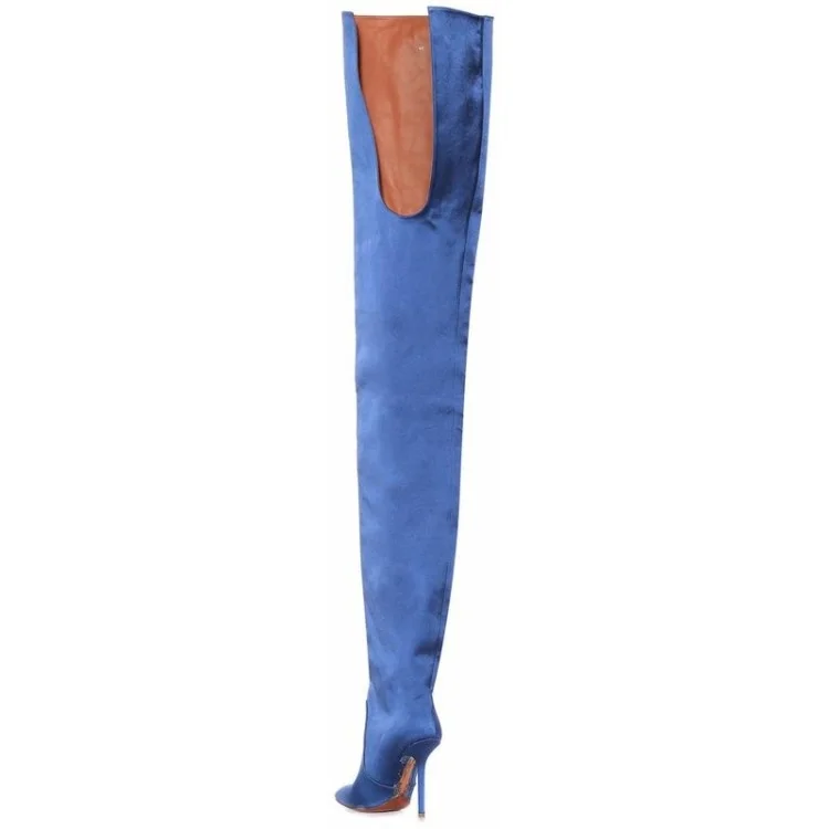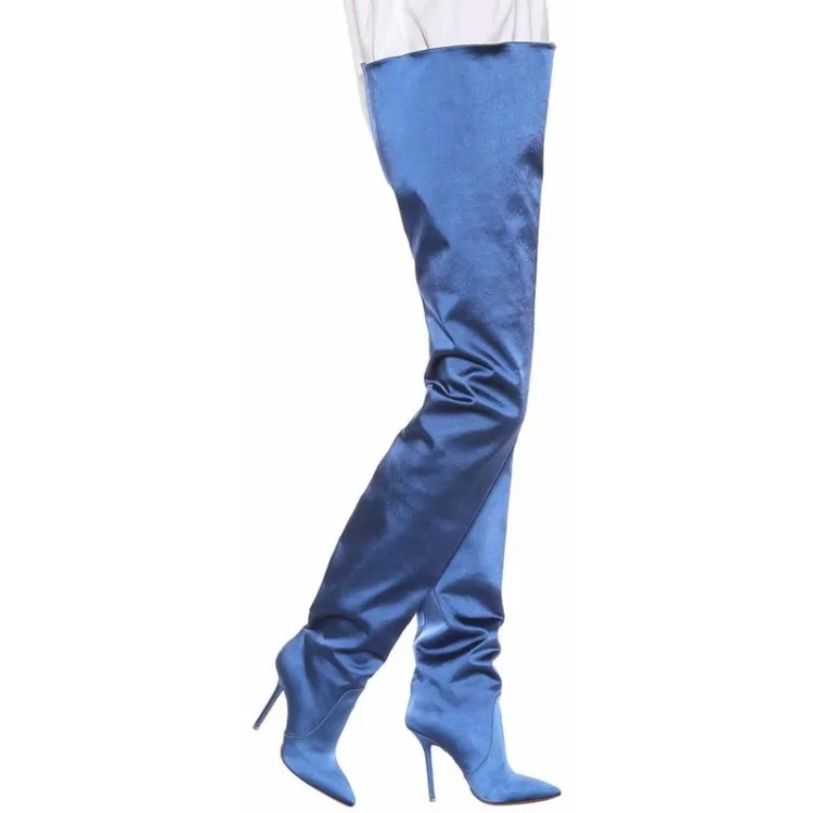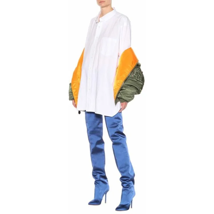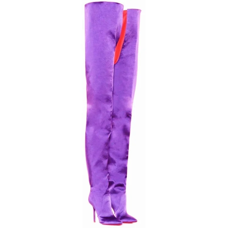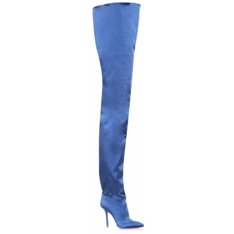 Пикантные женские сапоги с талией; Неоновые атласные женские сапоги...