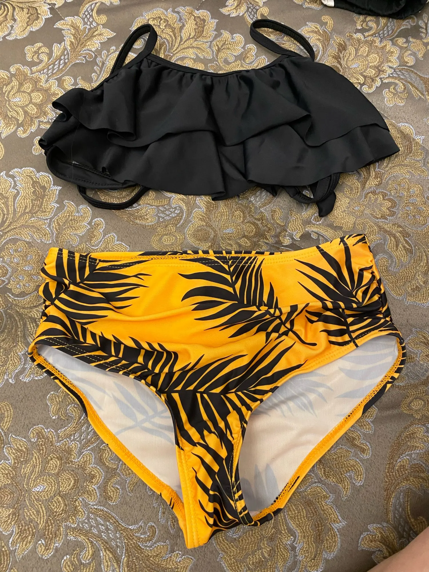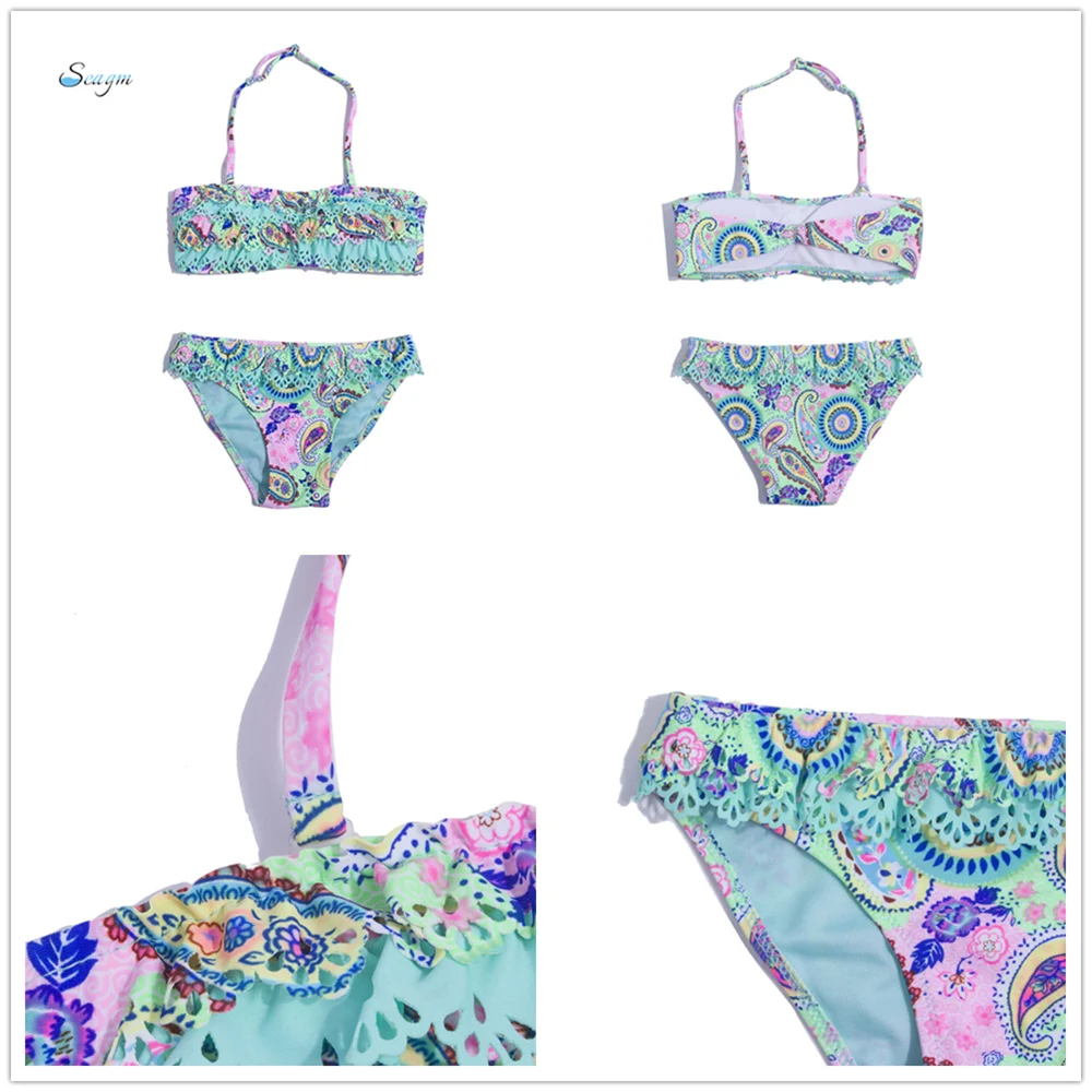 Детский комплект бикини для девочек, купальный костюм из двух предметов с оборками, летний детский купальник с лямкой через шею, купальник для девочек, бандажный купальный костюм, 2021