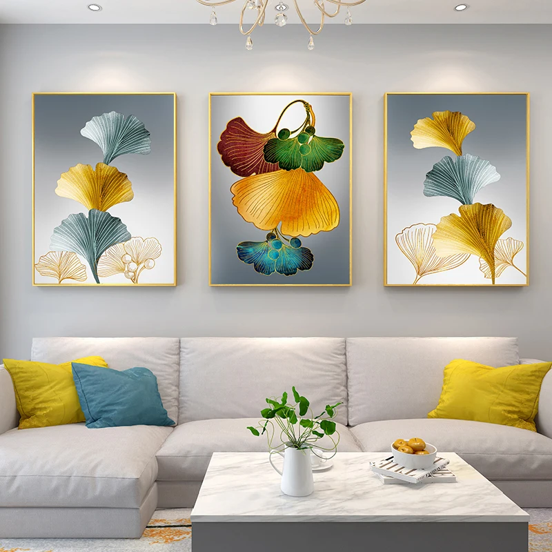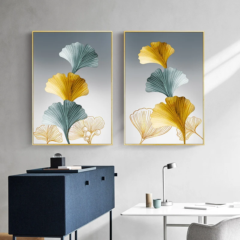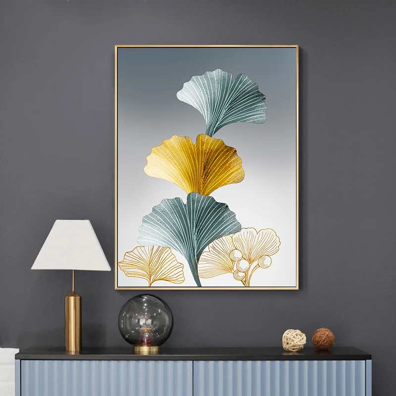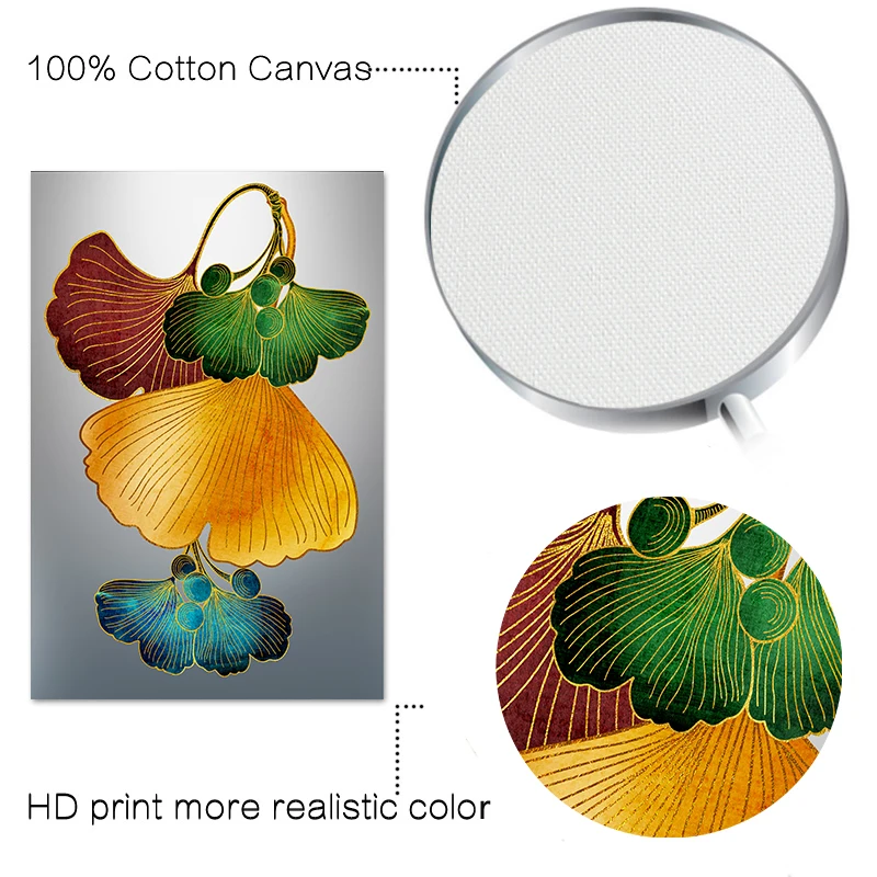 Золотая гинкго билоба, лист, растение, Абстрактная Картина на холст...