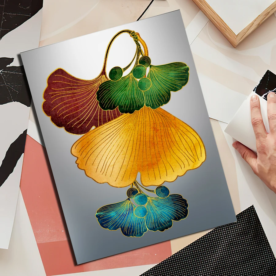 Цветные растения гинкго билоба лист Абстрактная живопись холст плак...