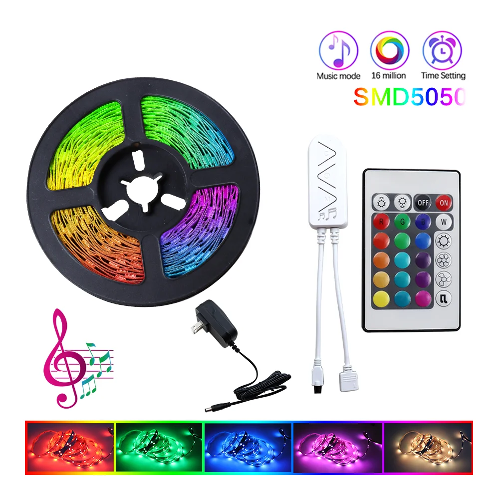 RGB музыкальная Светодиодная лента 510 м 5050 RGB гибкая лента 12 В меняющая цвет водонепроницаемая Диодная лента для украшения спальни