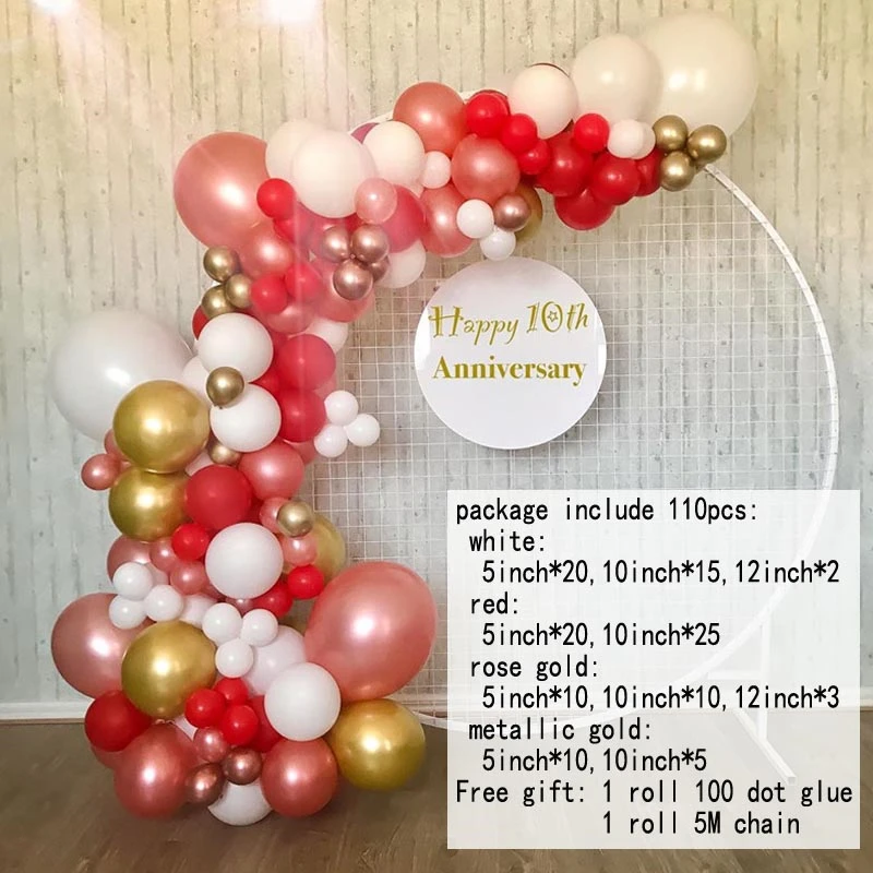 Свадебные Воздушные шары, 110 шт., из розового золота, арочный комплект, белые, красные, белые, для 30 дней рождения, юбилей, вечеринка, украшение