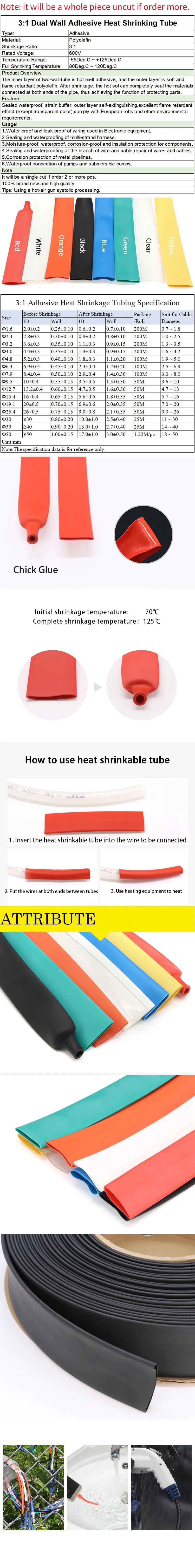 Трубка термоусадочная с двойными стенками 1,62,43,24,86,47,9 мм, толстый клей, коэффициент 3:1, набор клейких трубок для усадки, обмотка проводов