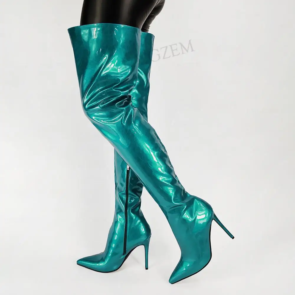 SEIIHEM/модные женские сапоги выше колена; Блестящие сапоги на каблуке; Сапоги до бедра на молнии сбоку; Botas Mujer; Женская обувь; Большие размеры 42, 43, 46, 47